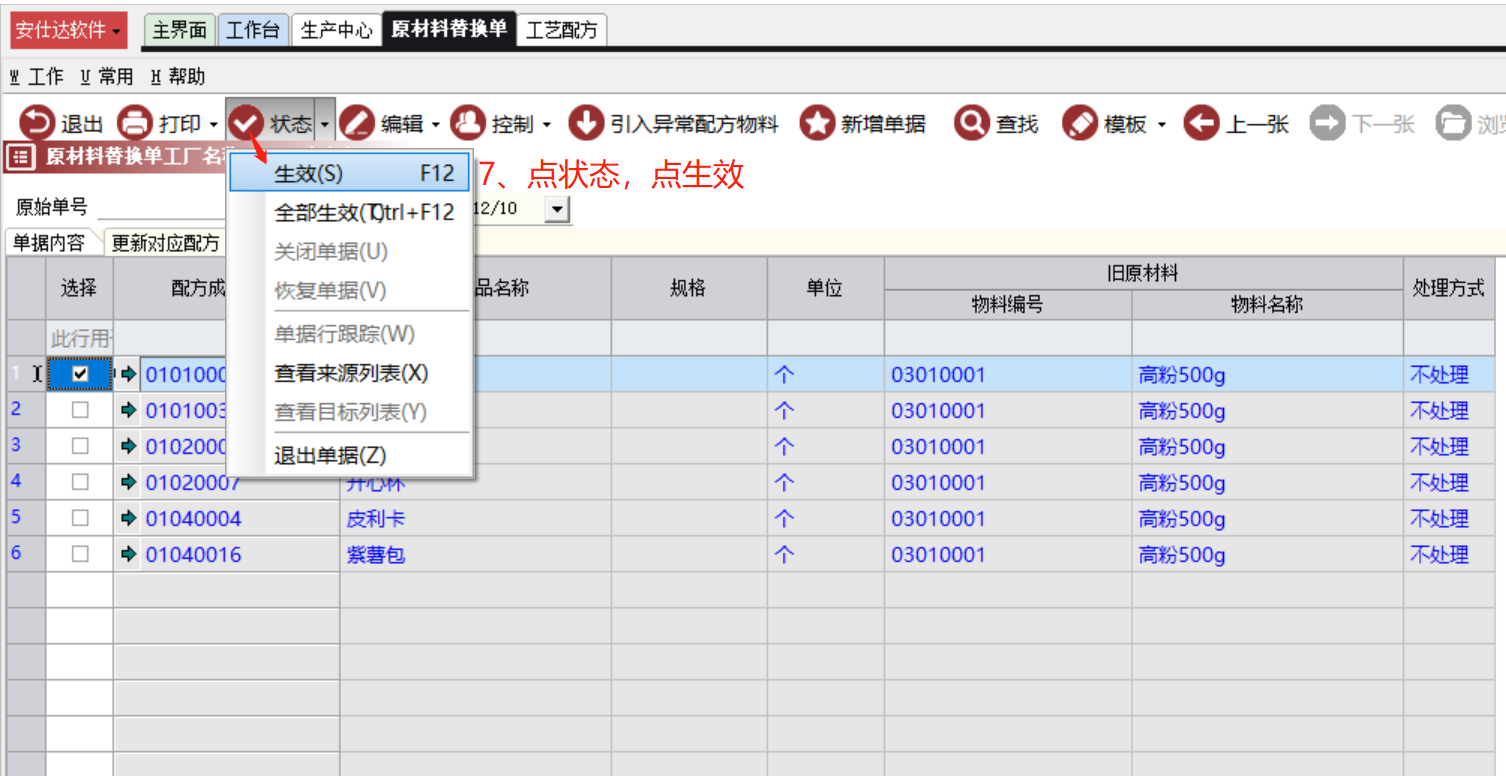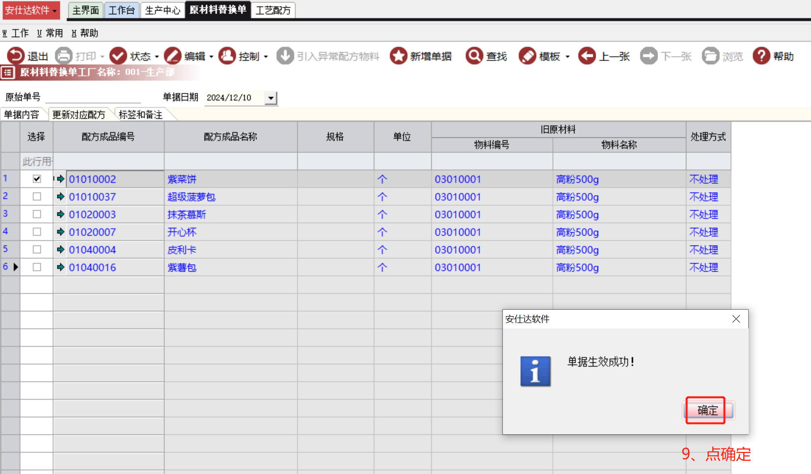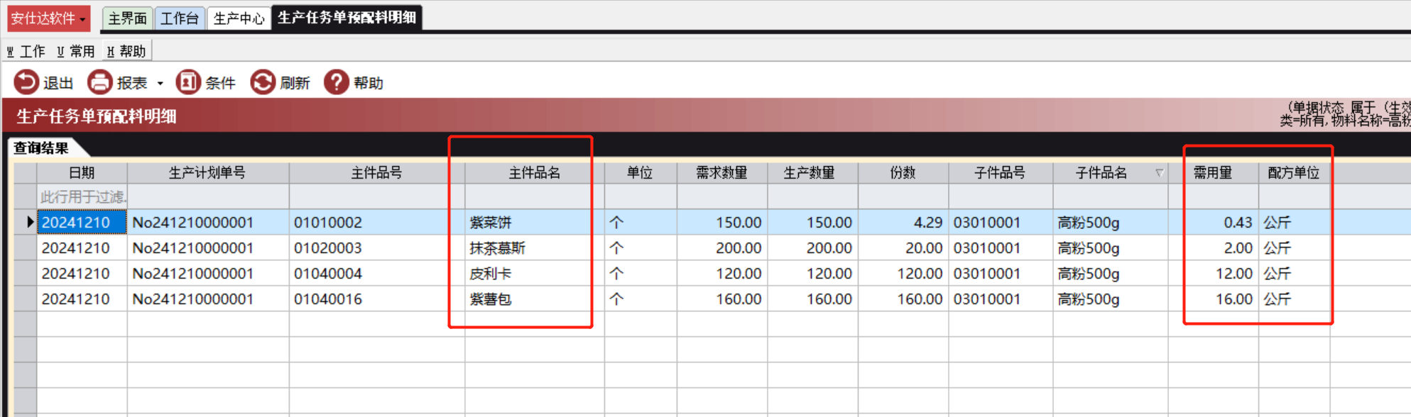 1、通过生产任务与配料明细,了解相关单品的高粉使用情况。