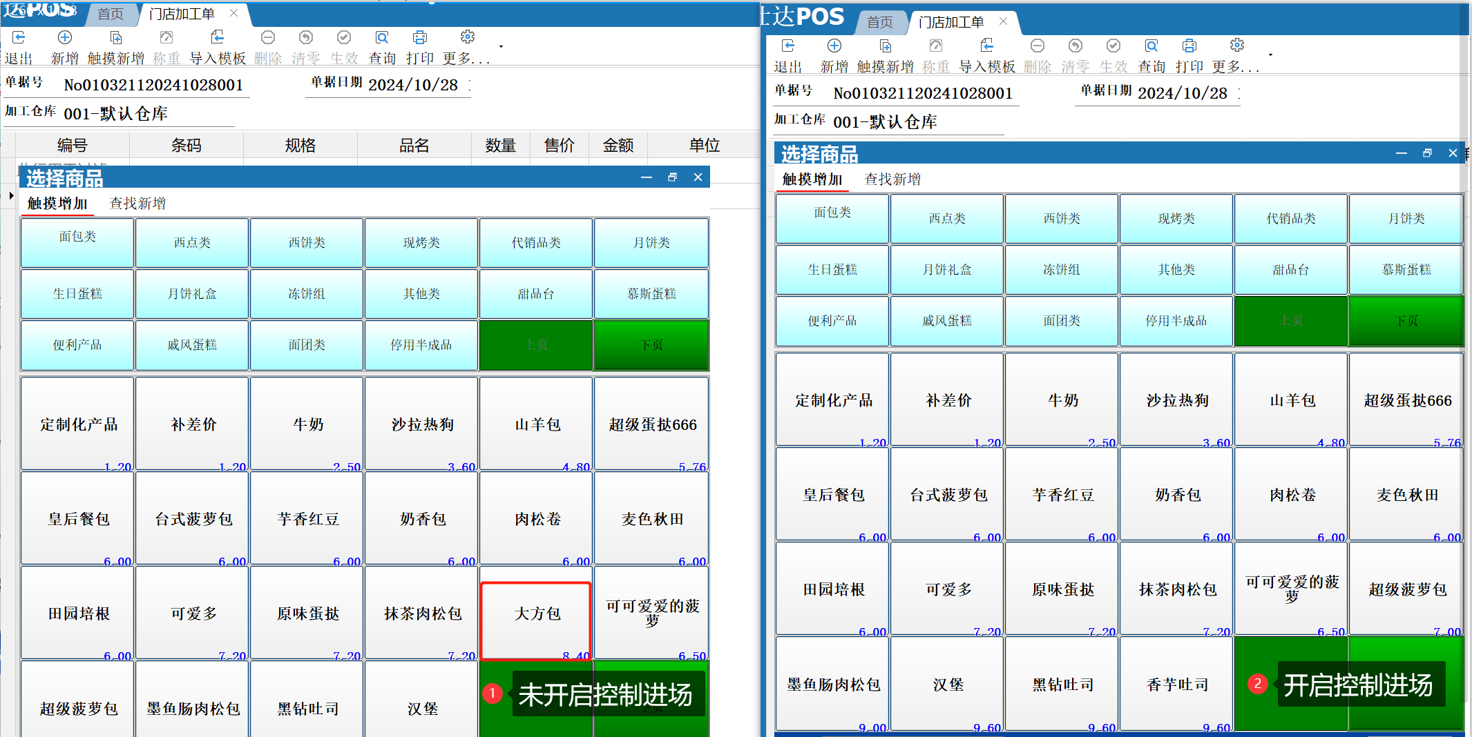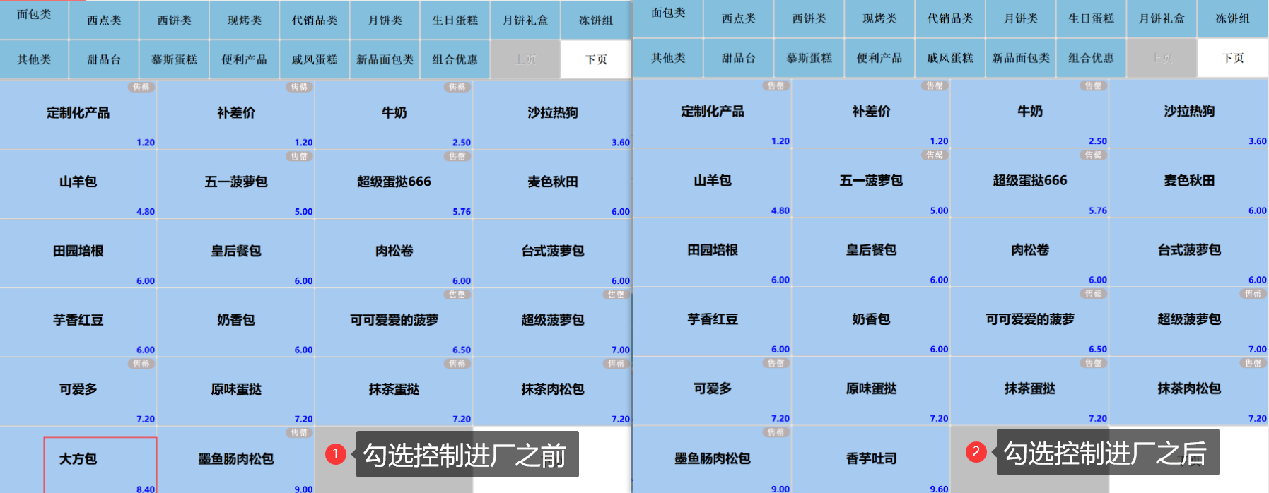 2、解决方案:产品工厂不制作,店里也没有库存的时候,后台可以通过勾选控制进场,来让门店业务单据不出来这个产品。