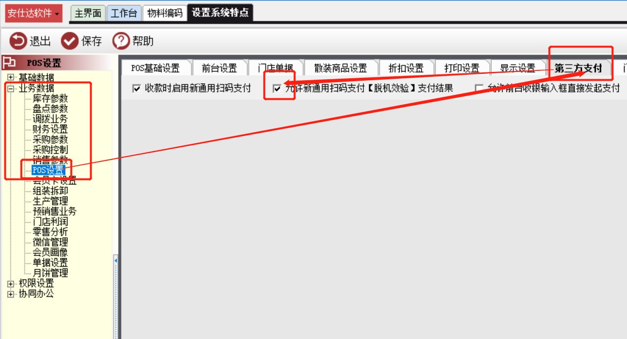 勾选“允许通用扫码支付【脱机效验】支付结果”
