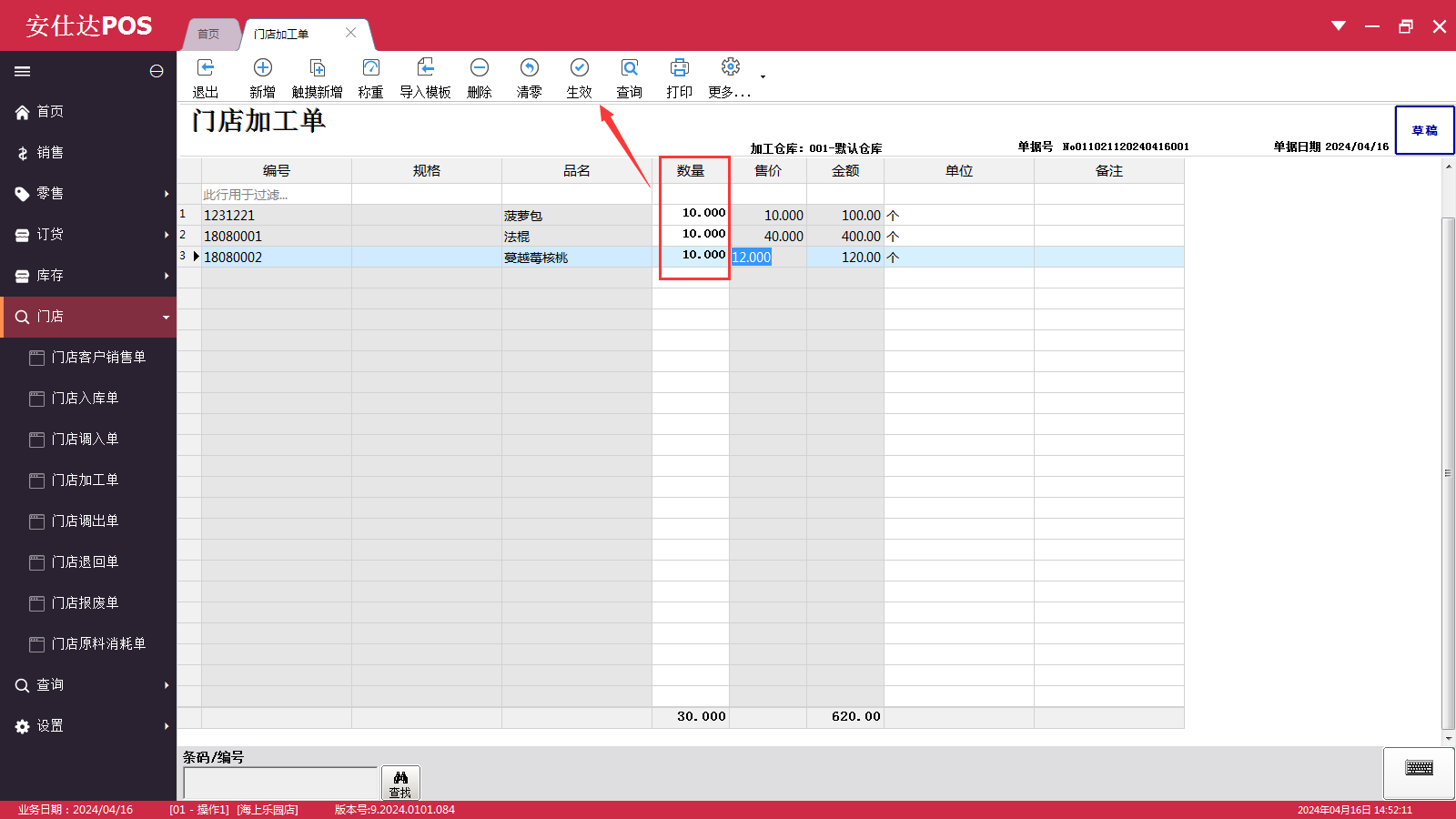 首页直接点击加工单按钮,或者左侧菜单点击门店->门店订货单