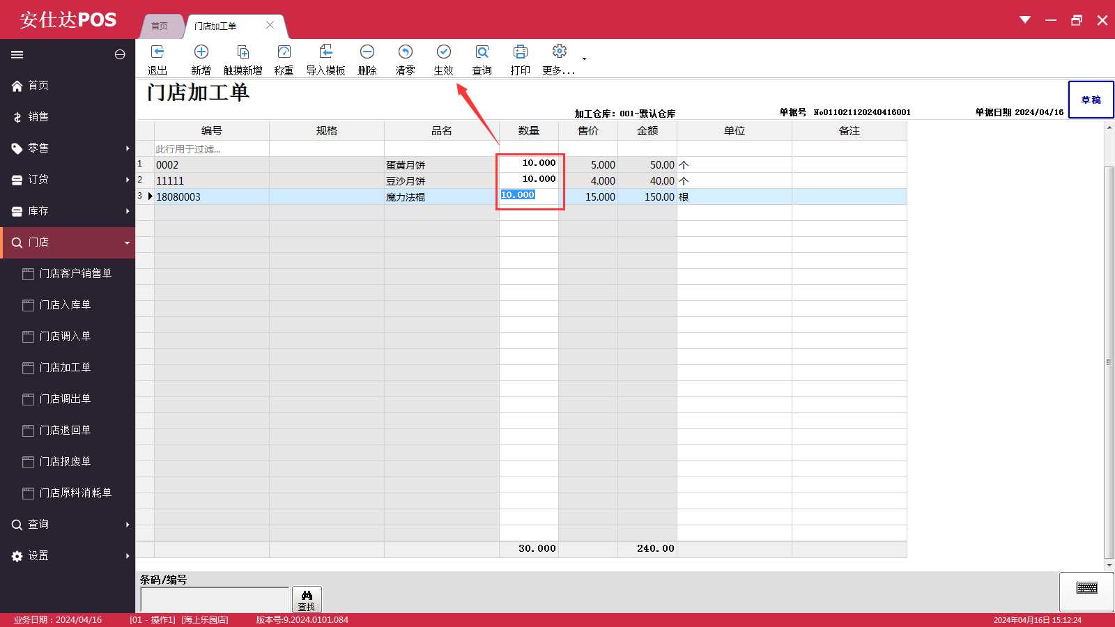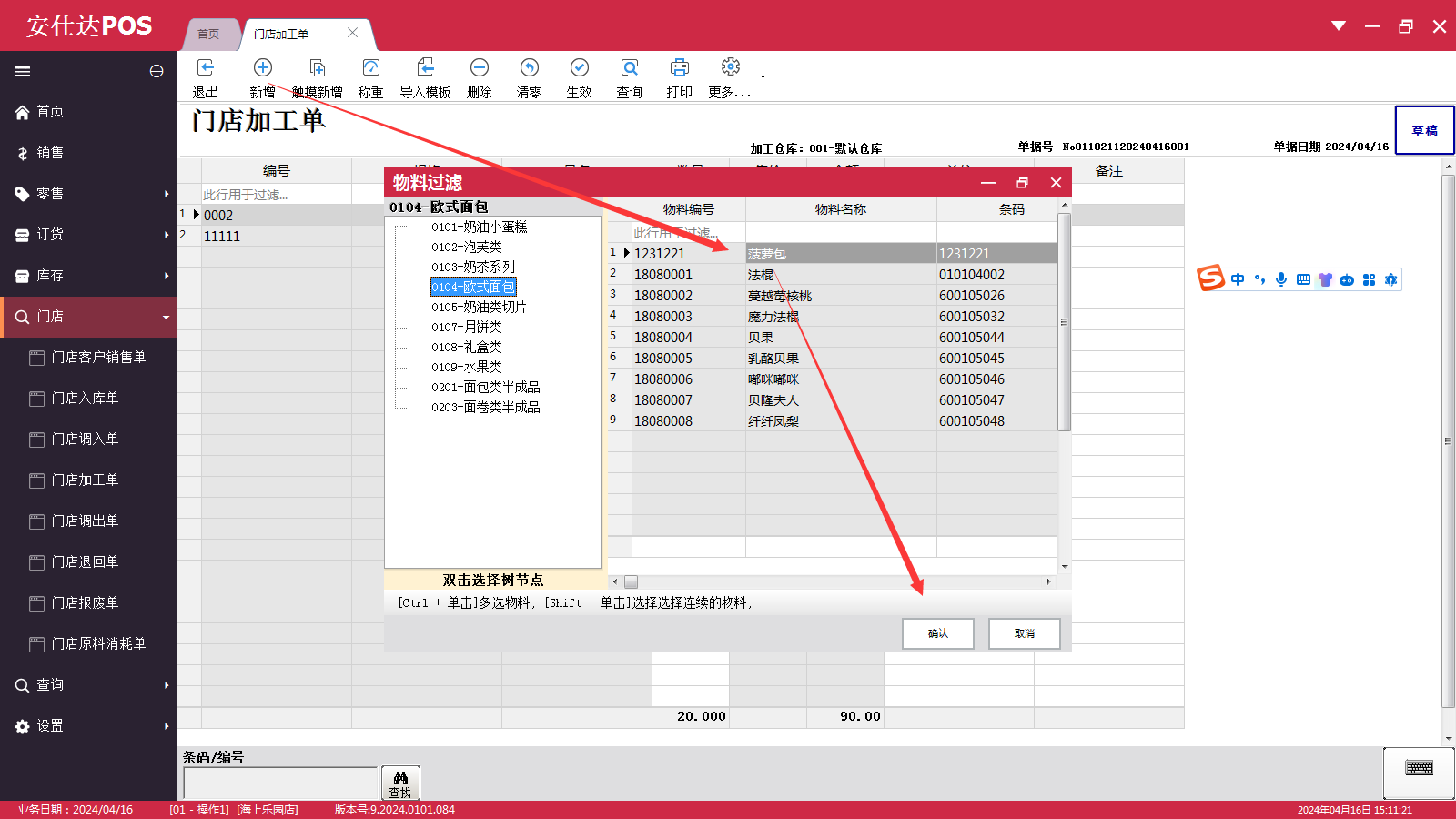 1.操作步骤打开门店加工单后,点击新增,选择已经生产的产品