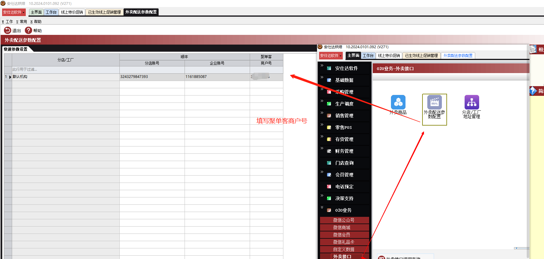 路径:后台 o2o业务--外卖接口--外卖配送参数配置