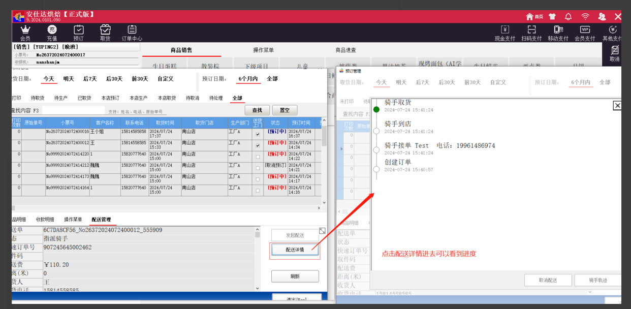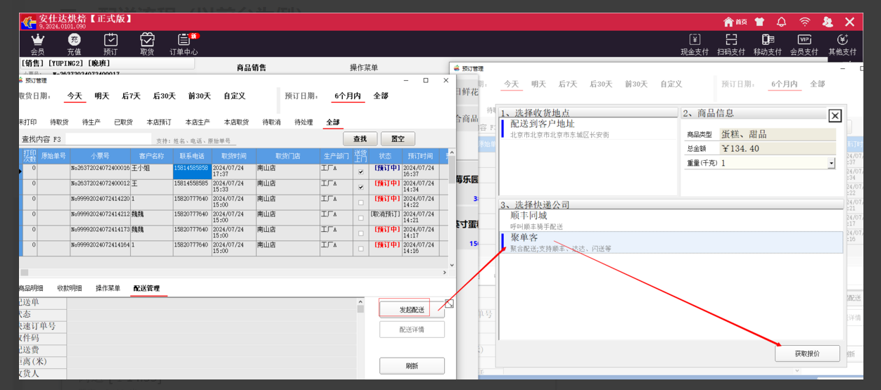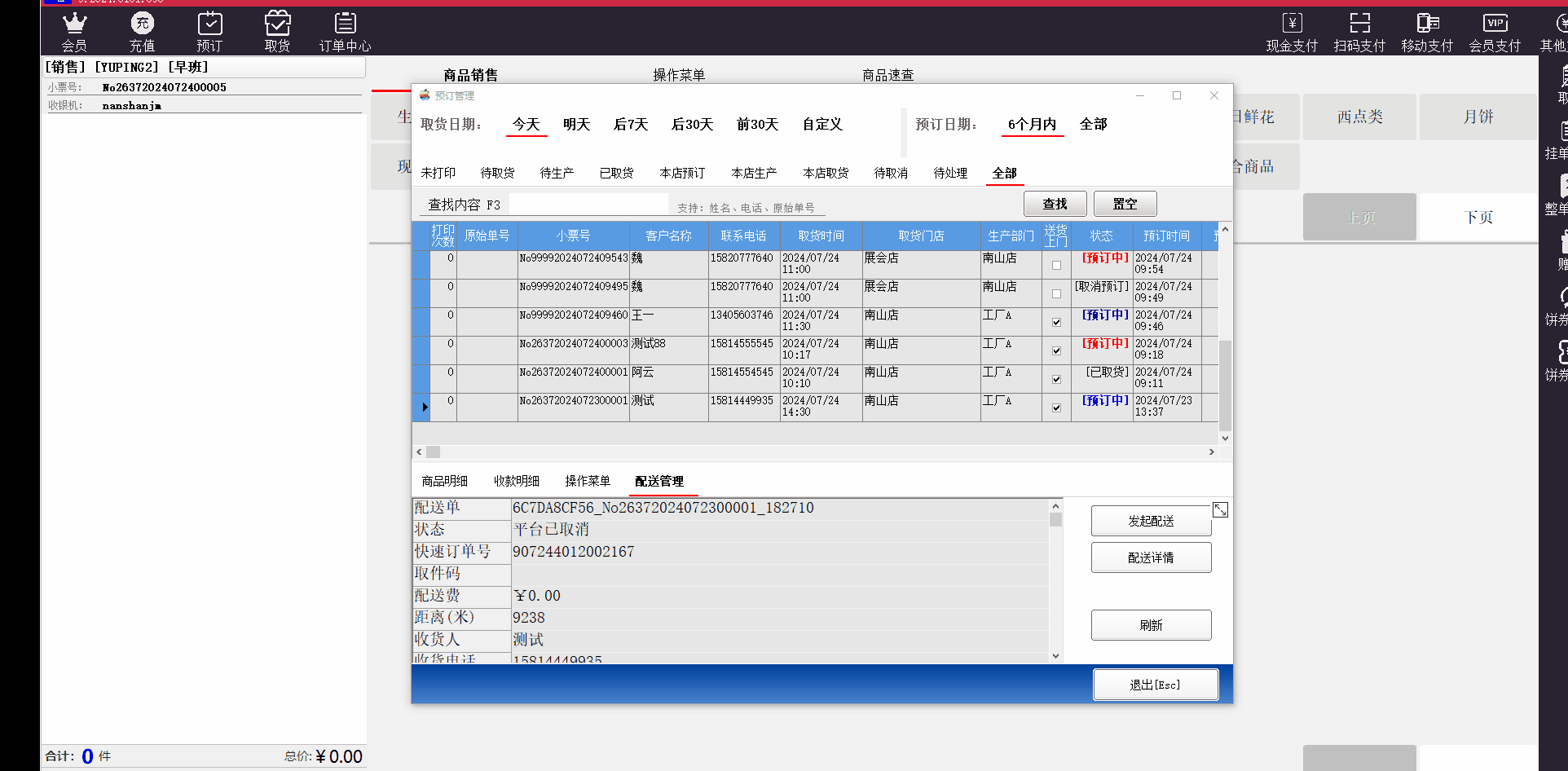 4)、后台订单中心也可发起配送,但必须生产部门是总部的才可以,自提、配送 都可配送。