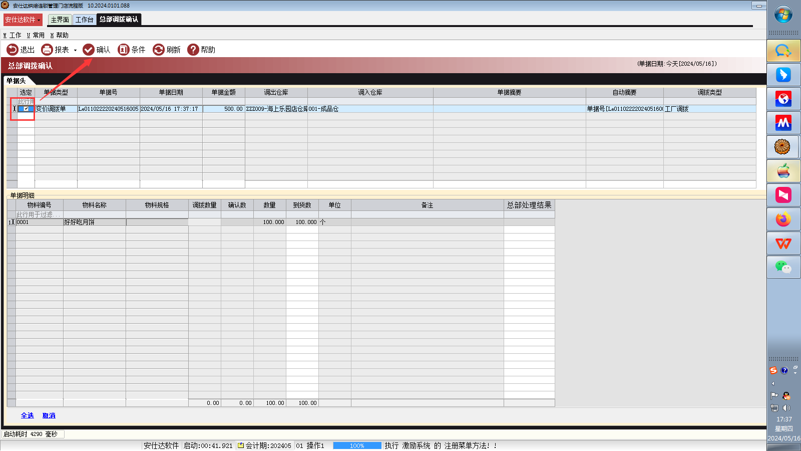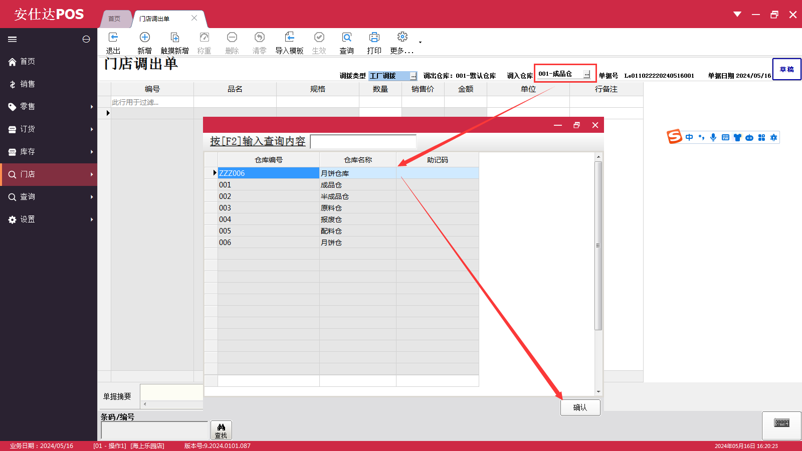 2.选择调入的工厂(后台)仓库(选择工厂调拨后,那调入仓库就只能选择后台工厂的仓库)