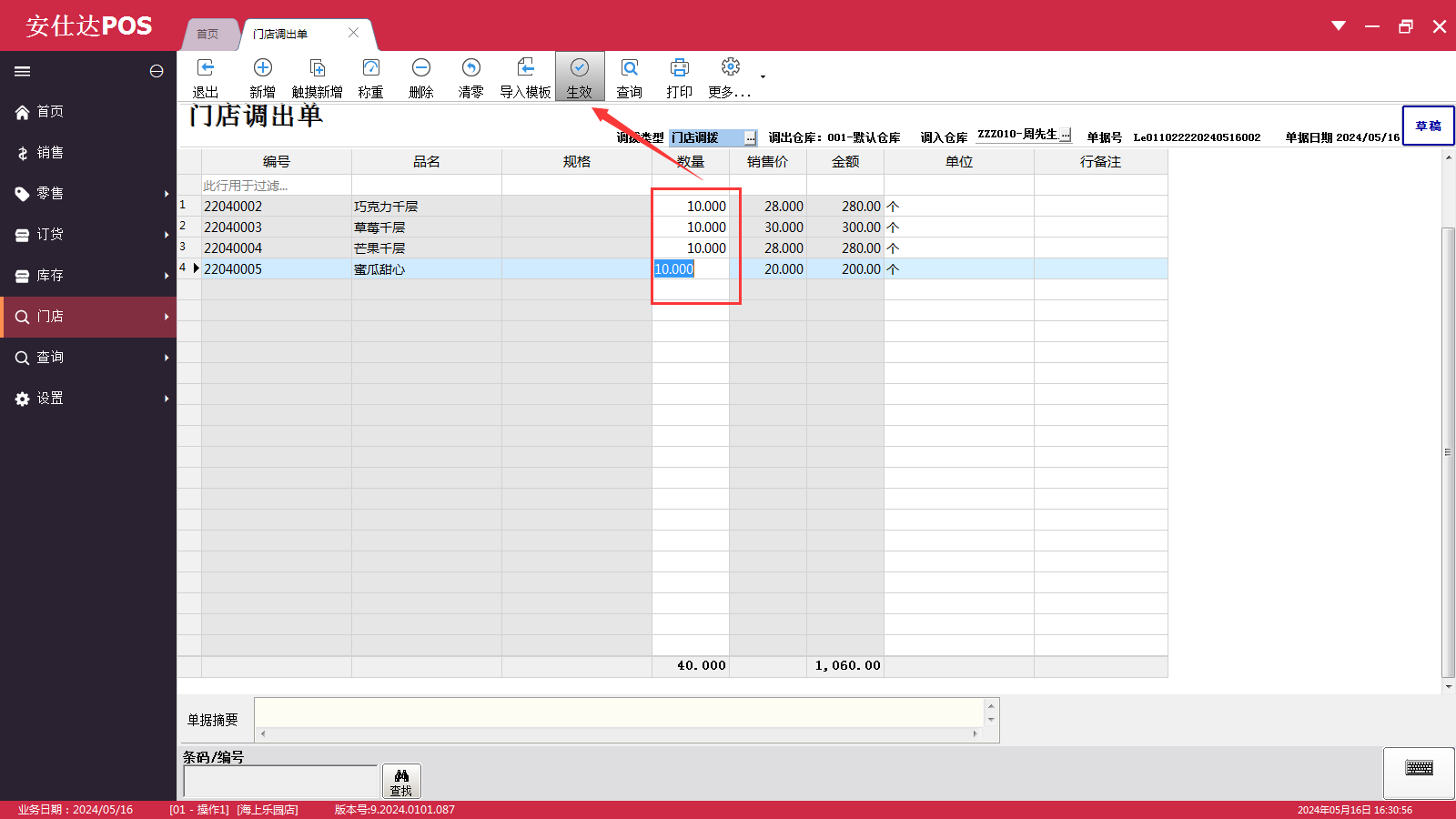 用于门店给(后台)工厂仓库调拨,或者是门店给门店之间互相调拨