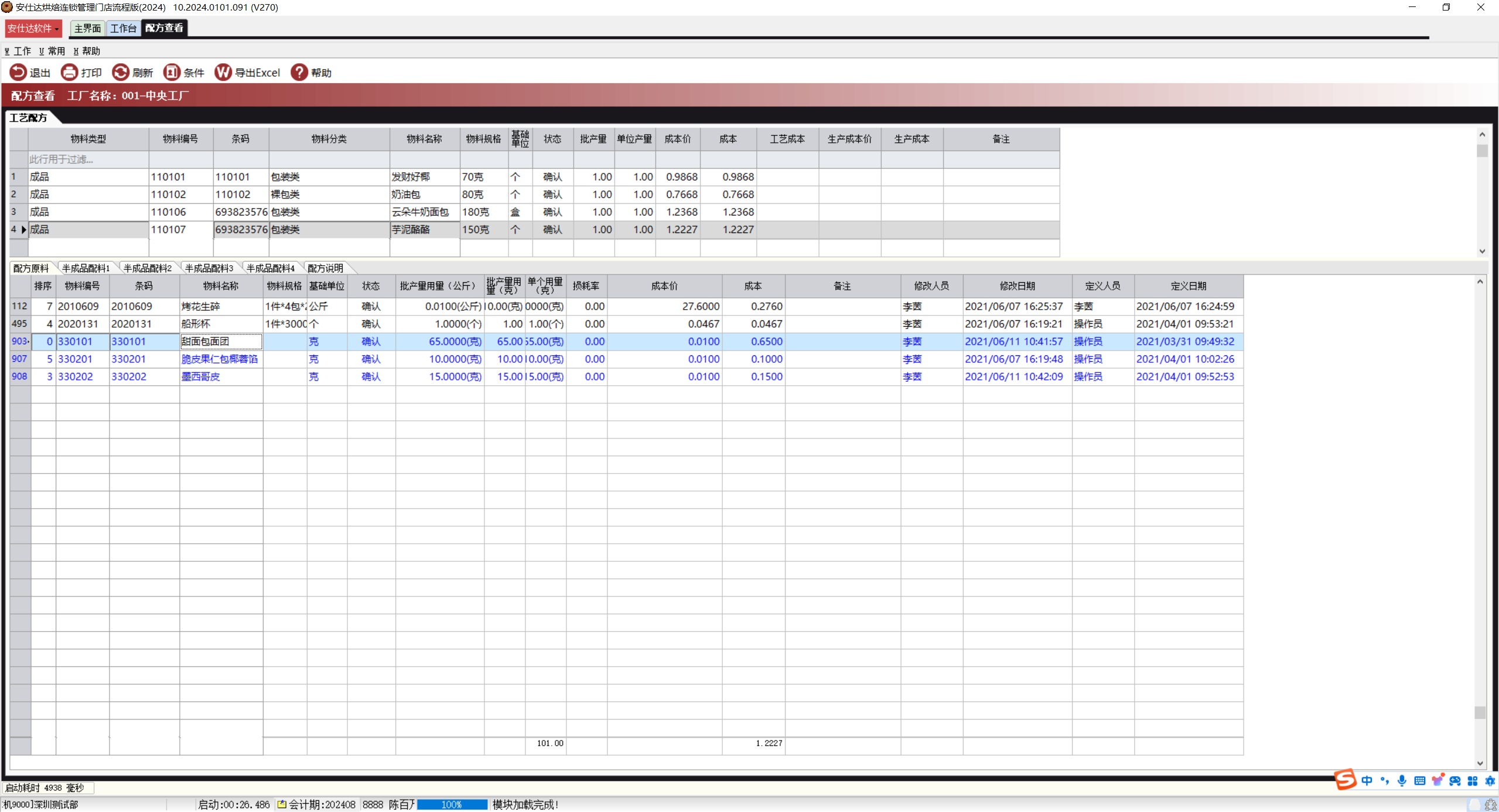 半成品配料1:对于复杂的半成品,其配方可能包含多个层级,即半成品可能由其他更小的半成品或原材料组成。安仕达软件的配方查看功能支持多层级配方的管理,用户可以逐级查看和了解每个层级的配料信息。
