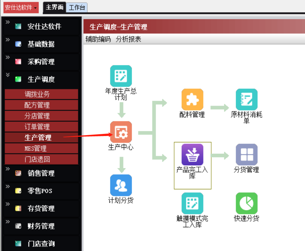 生产调度-->生产管理-->生产中心
