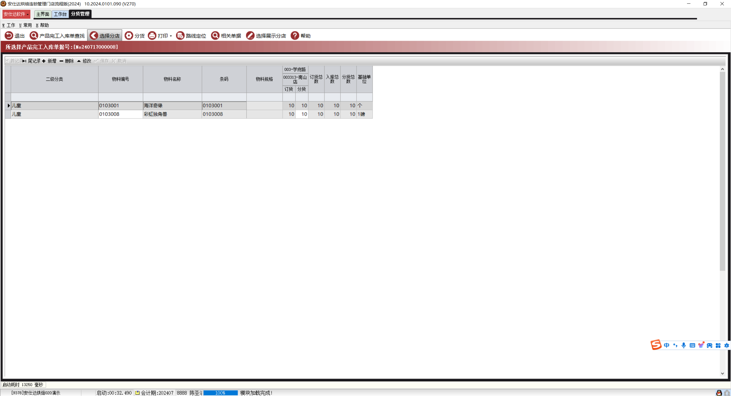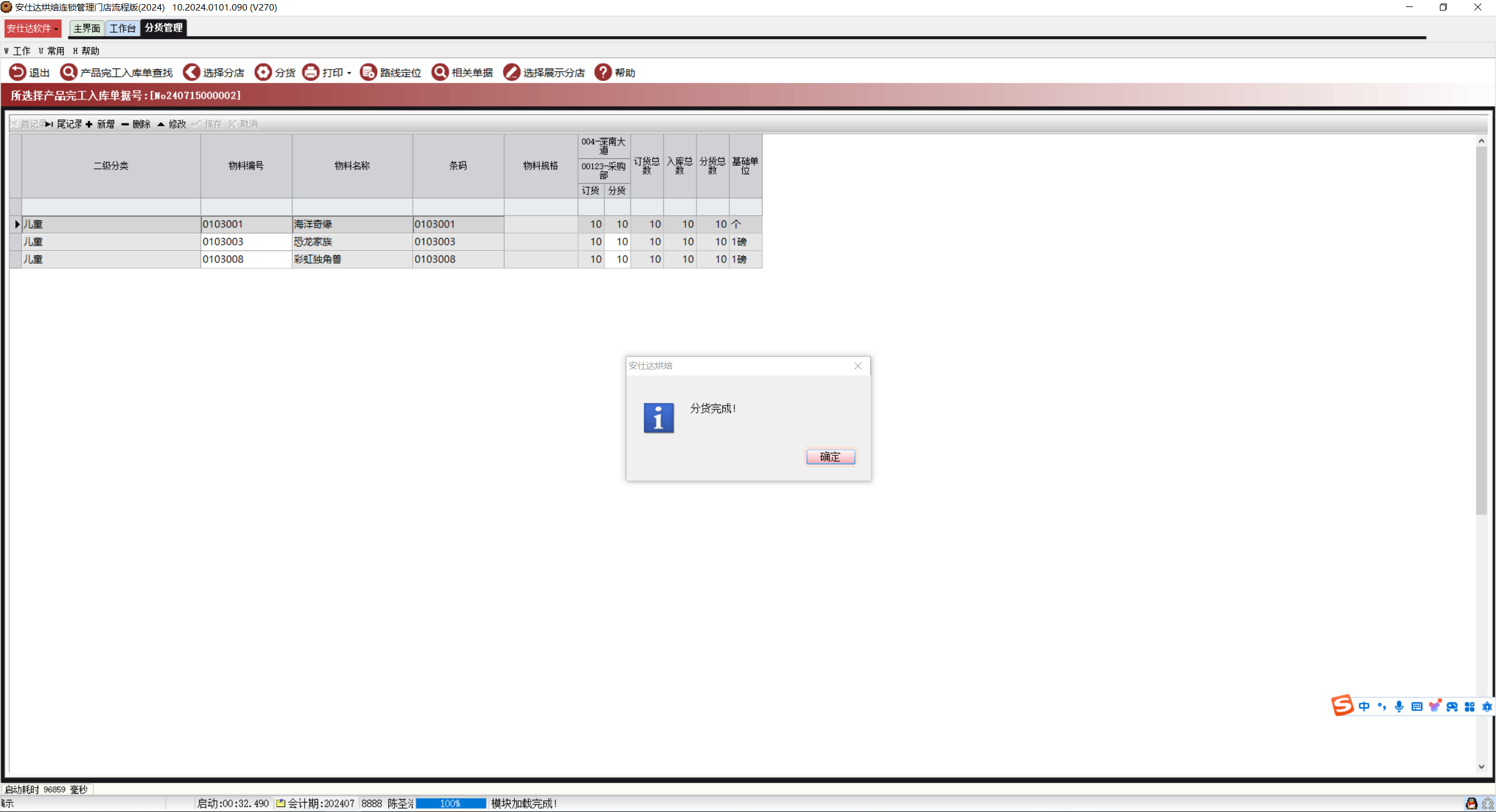 按照产品完工入库单进行门店分货