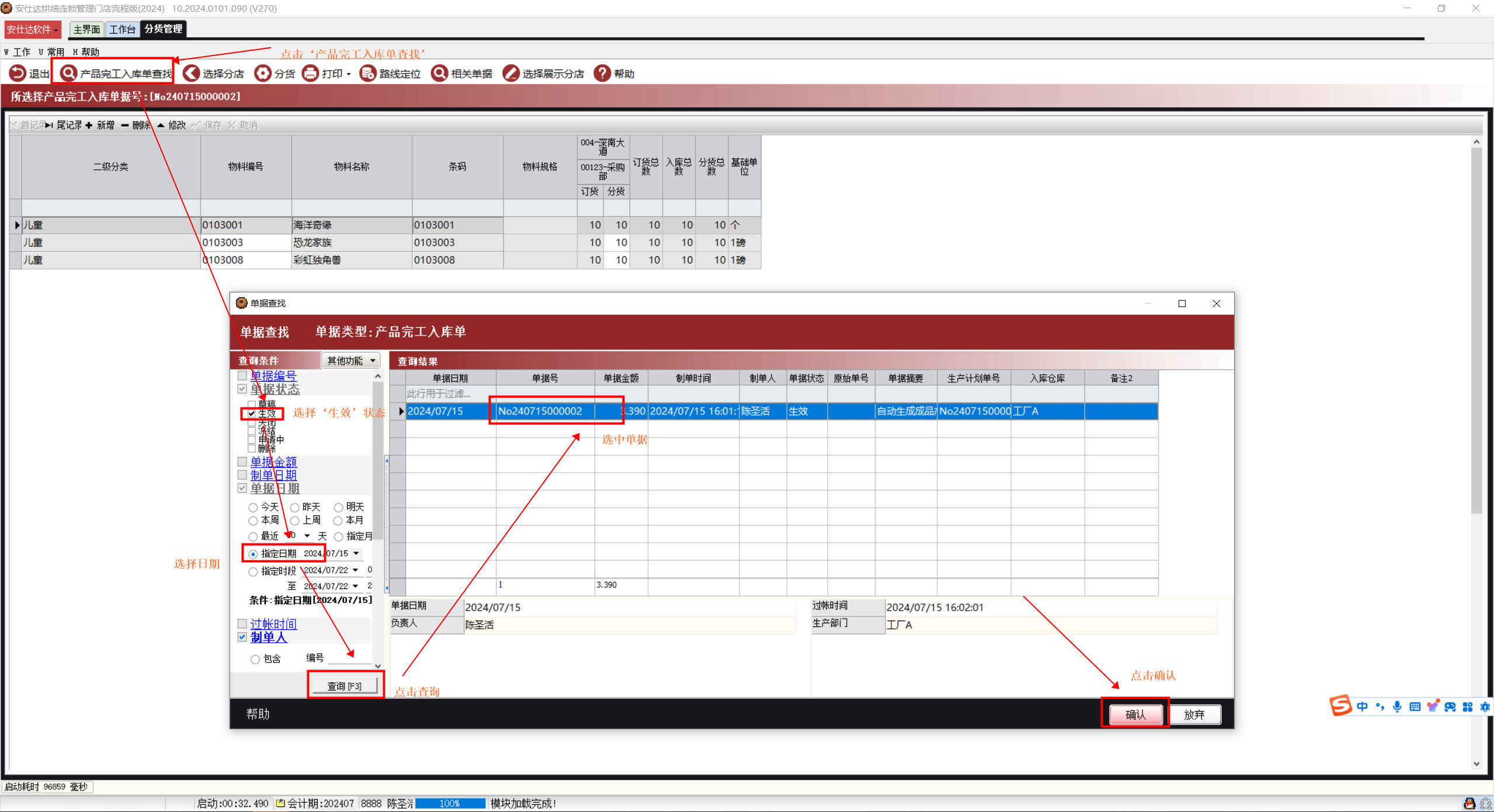 产品完工入库单查找:用于选择相关产品完工入库单