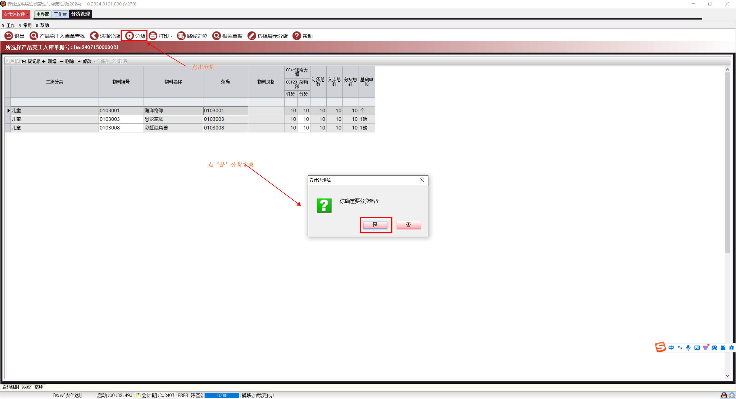 3)分货完成