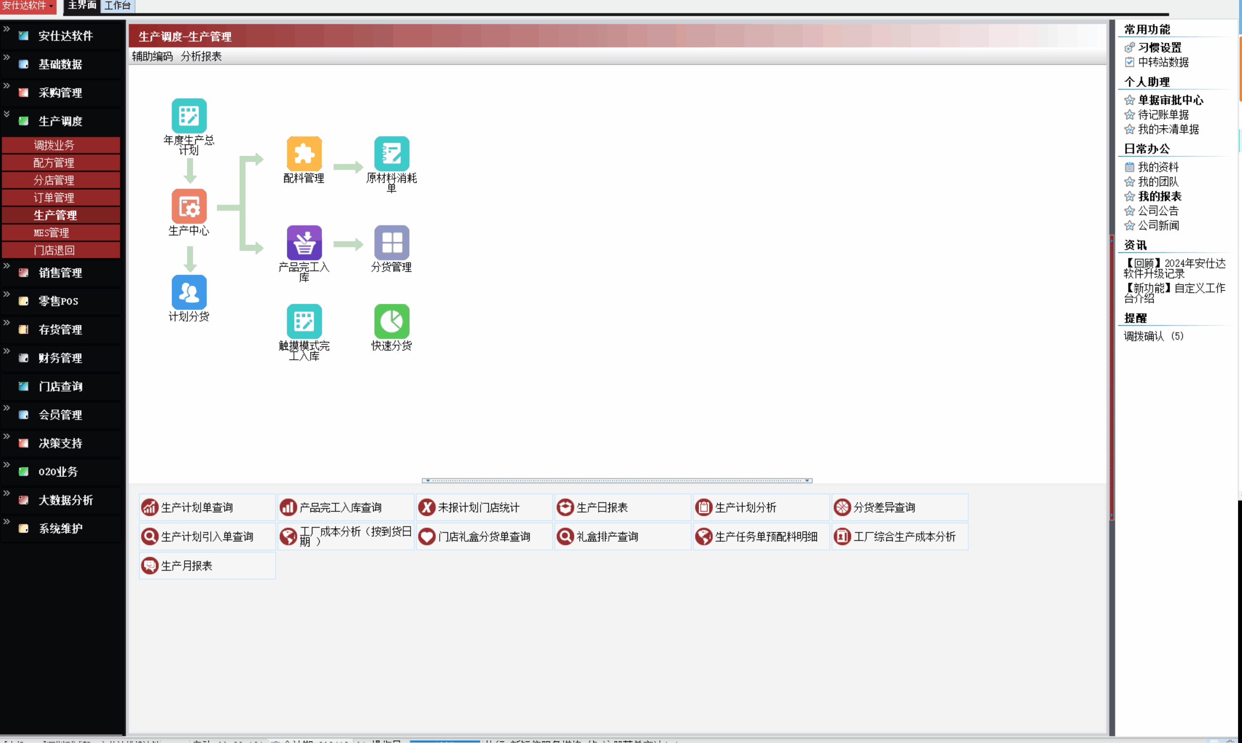 原料申请:配料间原料不足的时候,可以向原料仓发起领料申请。 --》 根据生产计划汇总值结合BOM配方计算出总体原材料需求量,再对比当前配料间的账面库存数量,差额生成一个计划领用单据草稿,生产人员可以去手工微调具体原材料的调拨申请数量,也可以直接采用系统计算结果生成默认的调拨单草稿(调拨申请状态)。原材料接到调拨申请后,组织人员进行实际的发料,并根据实际的多发或者少发去填写调拨数量(默认等于申请数量),将物料发给配料间的同时进行调拨单确认和记账,实现物料在软件库存帐内的调拨业务(原材料仓库减少发出库存,配料间增加收入库存)。