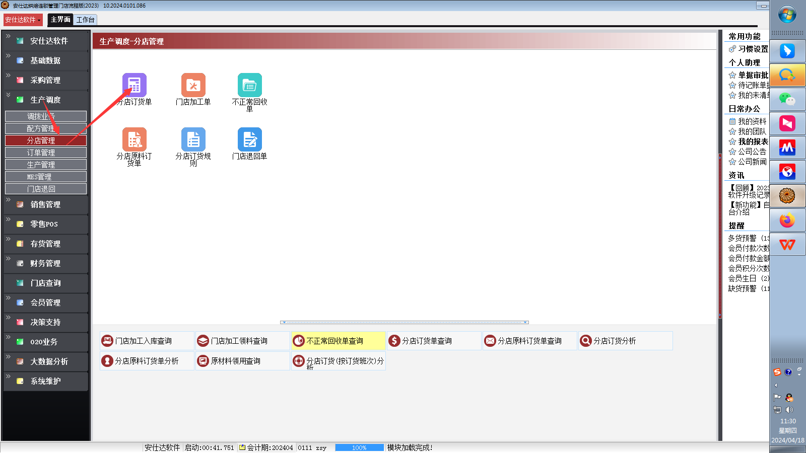 路径:【进入系统】→【生产调度】→【分店管理】→【分店订货单】