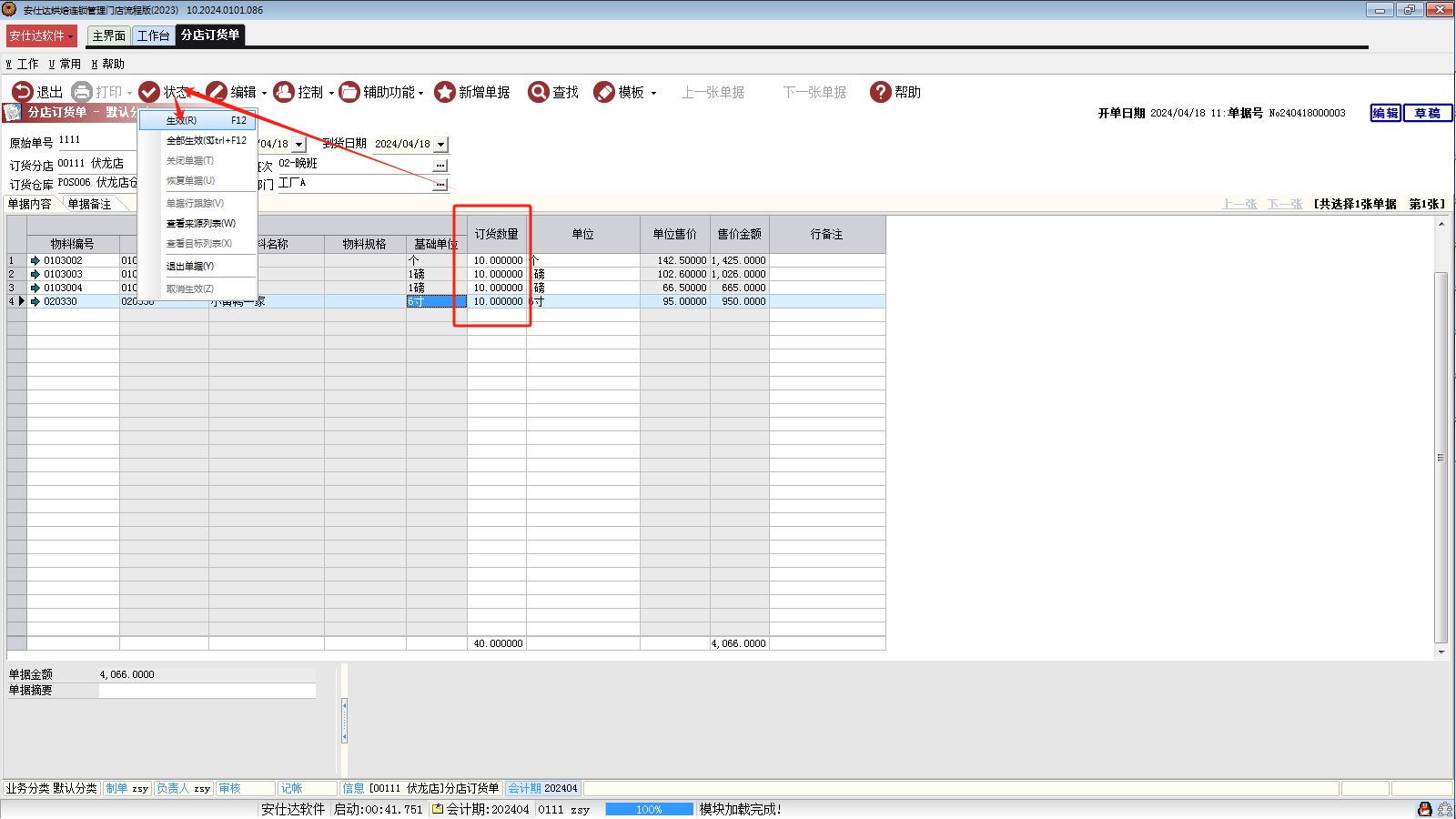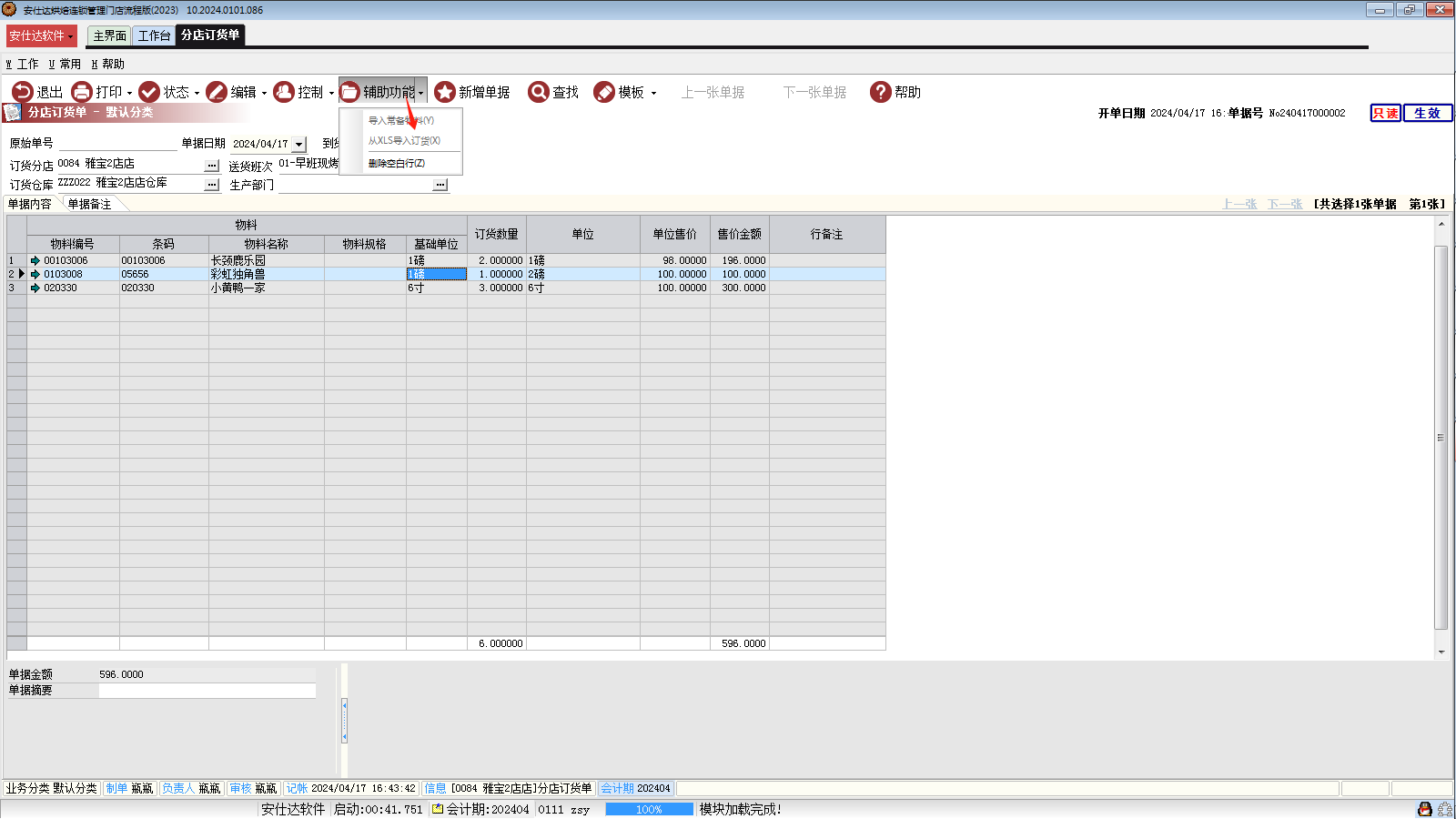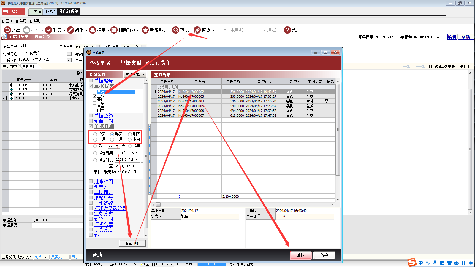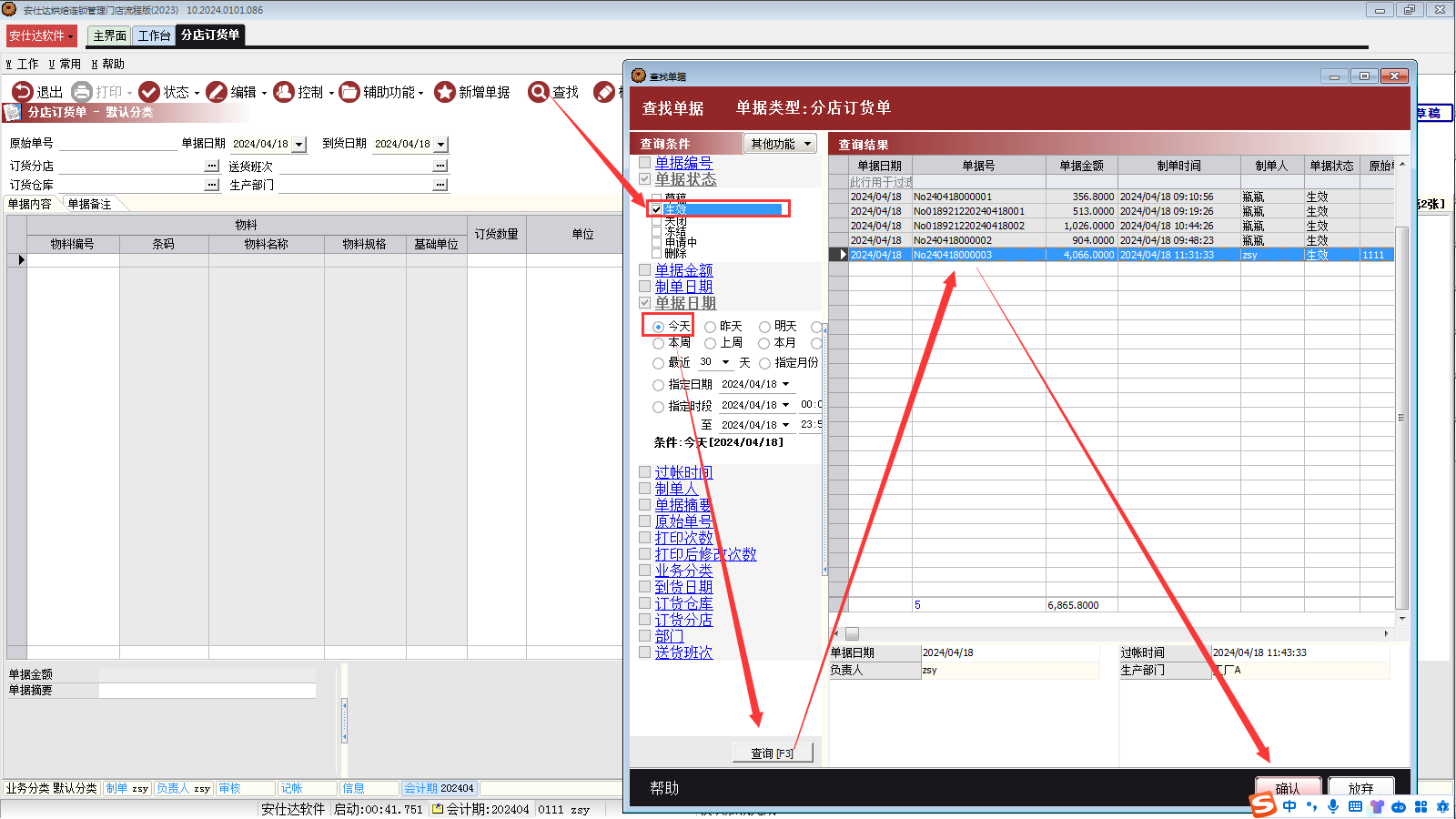 前面已经指导如何添加分店订货单据,现在我来指导如何修改已生效分店订货单据