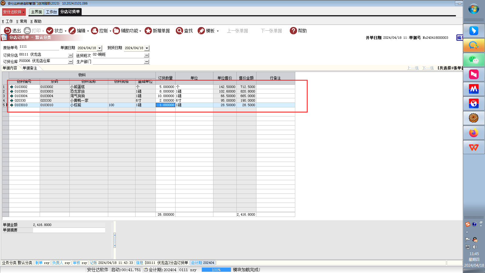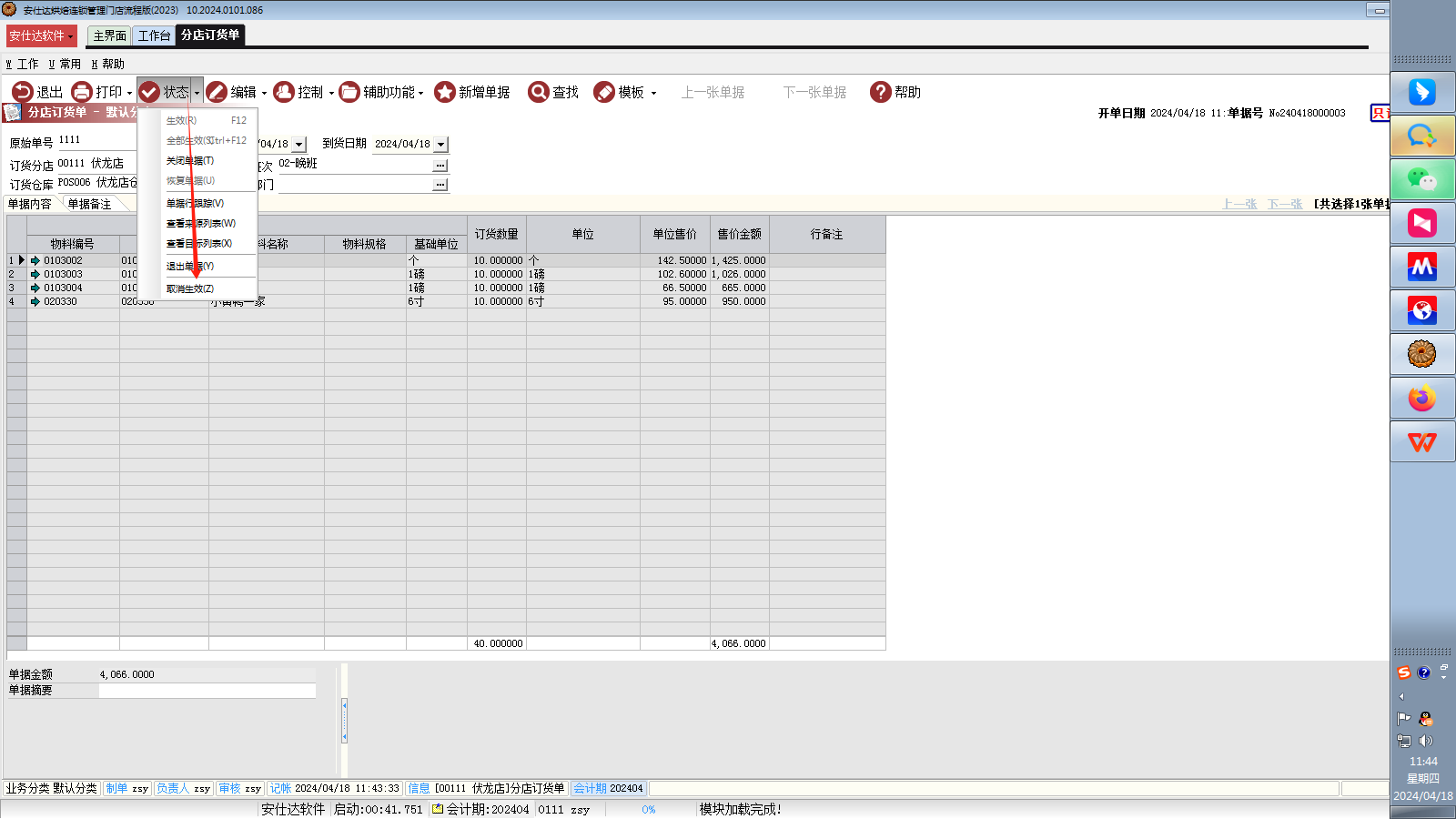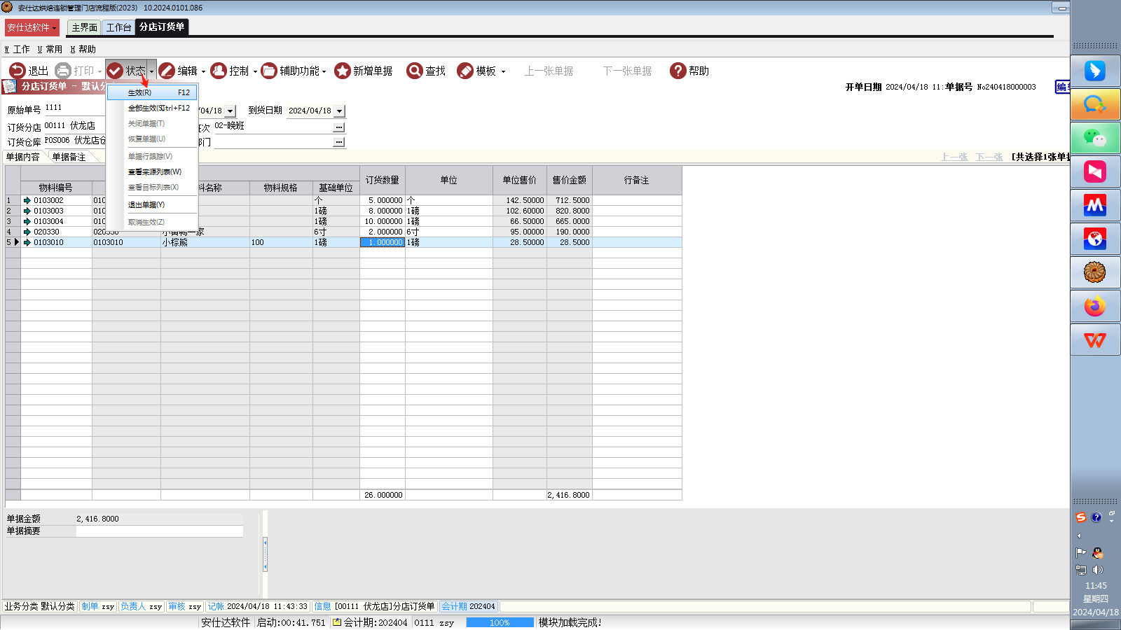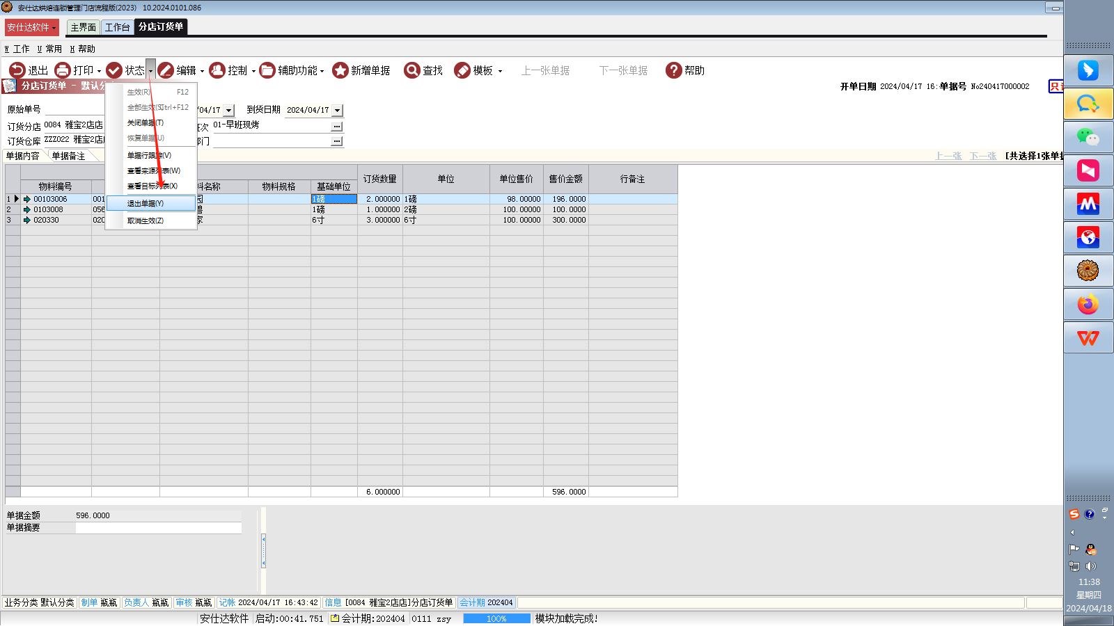 前面已经指导如何添加分店订货单据,现在我来指导如何修改已生效分店订货单据