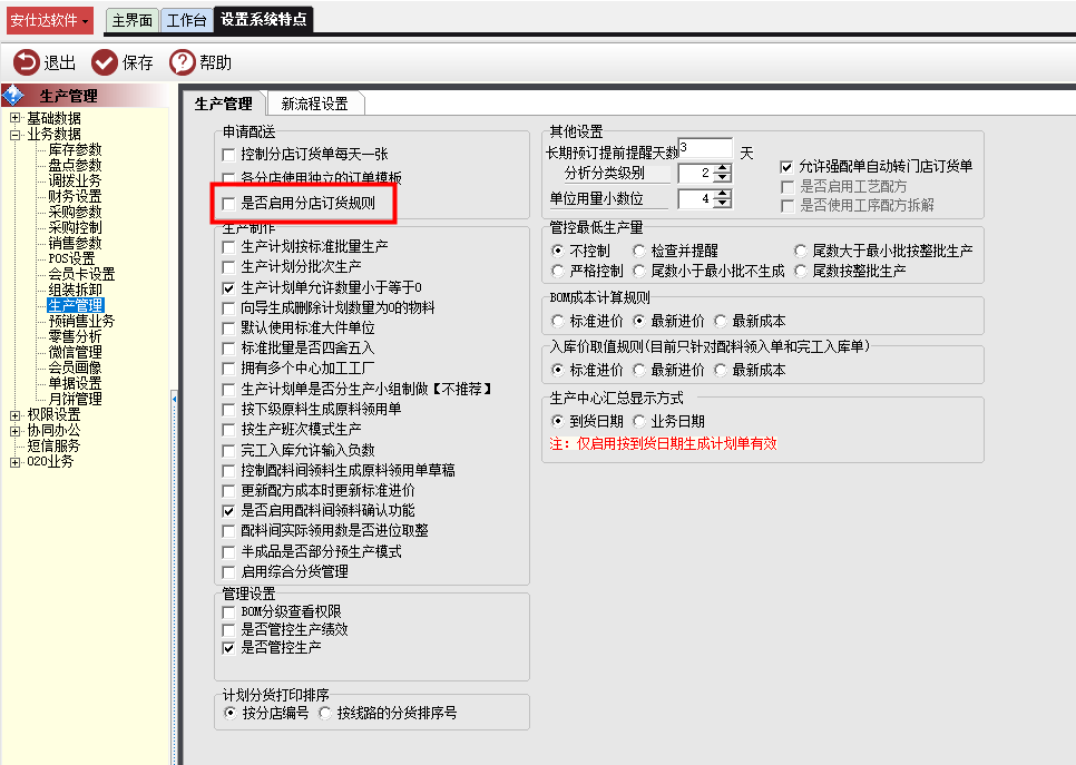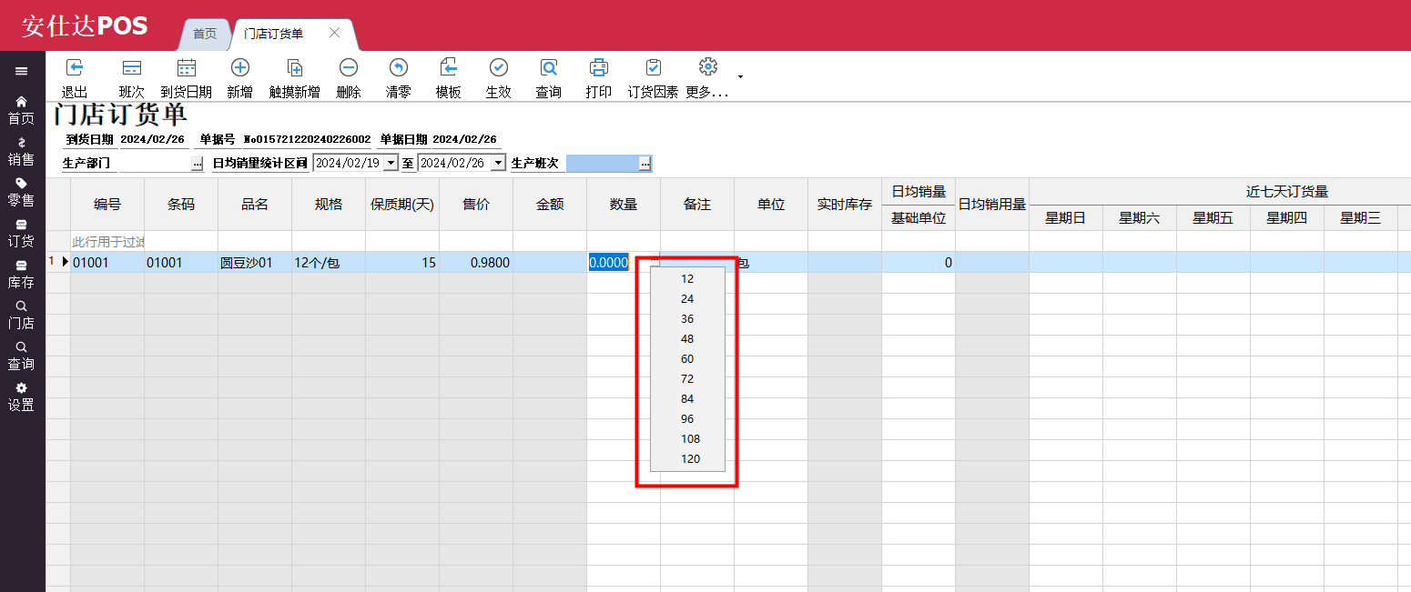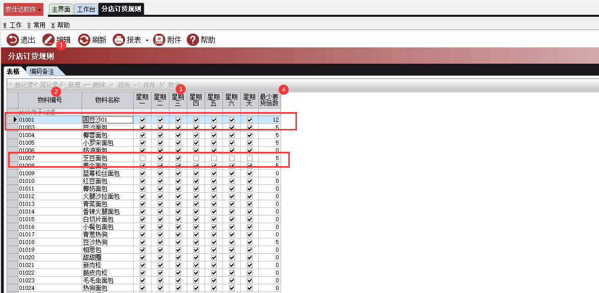 用于门店产品订货,可以定义星期条件及最少要货倍数(需要开启订货规则特点)