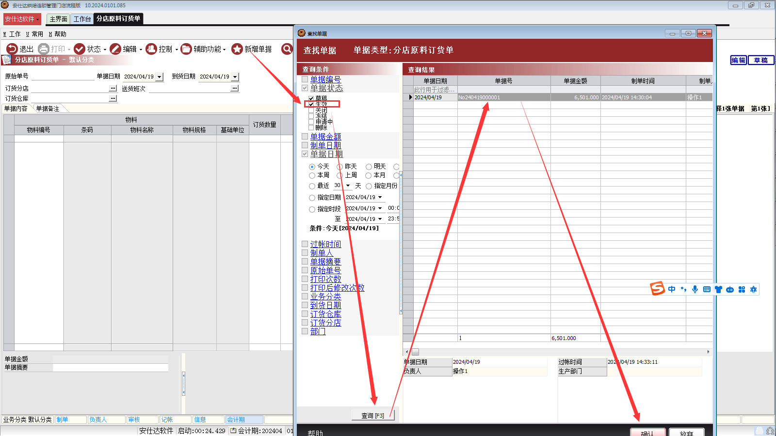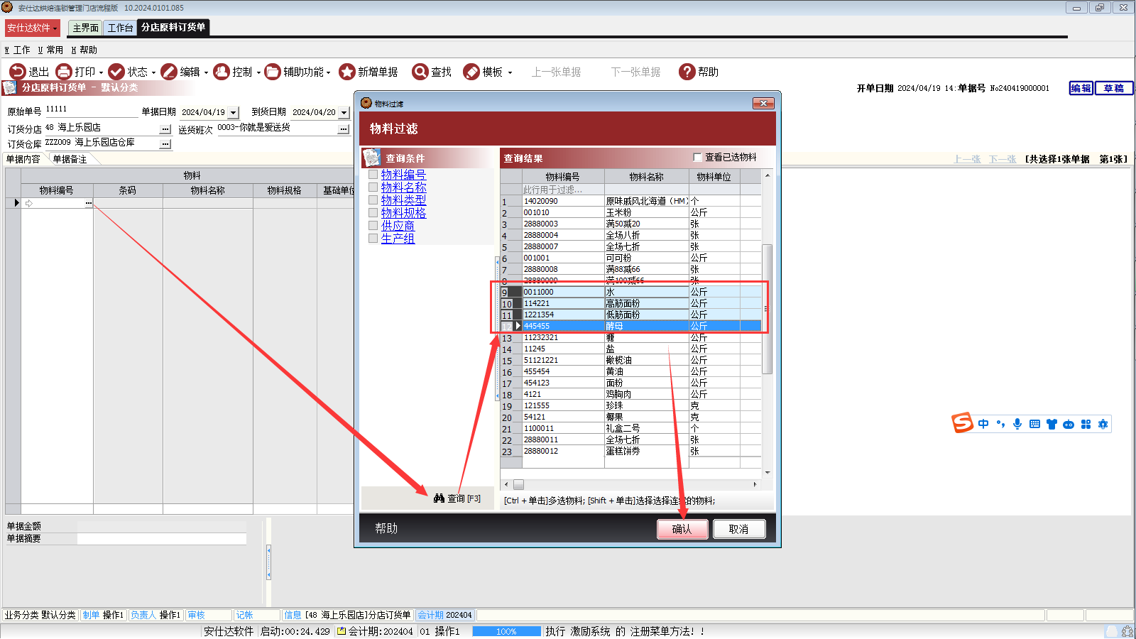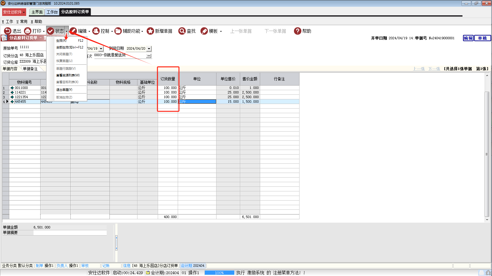前面已经指导如何添加分店原料订货单据,现在我来指导如何修改已生效分店原料订货单据