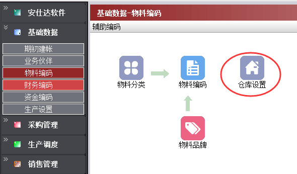 基础数据-物料编码-仓库设置