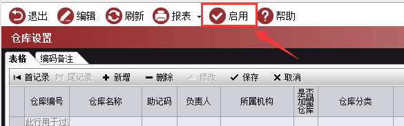 2、确认好仓库信息没有问题,需要点启用,这样新增的仓库才能能生效使用。