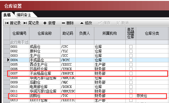 后台新增一个不合格品仓库和团购仓库并设置启用,便于管理库存物料。