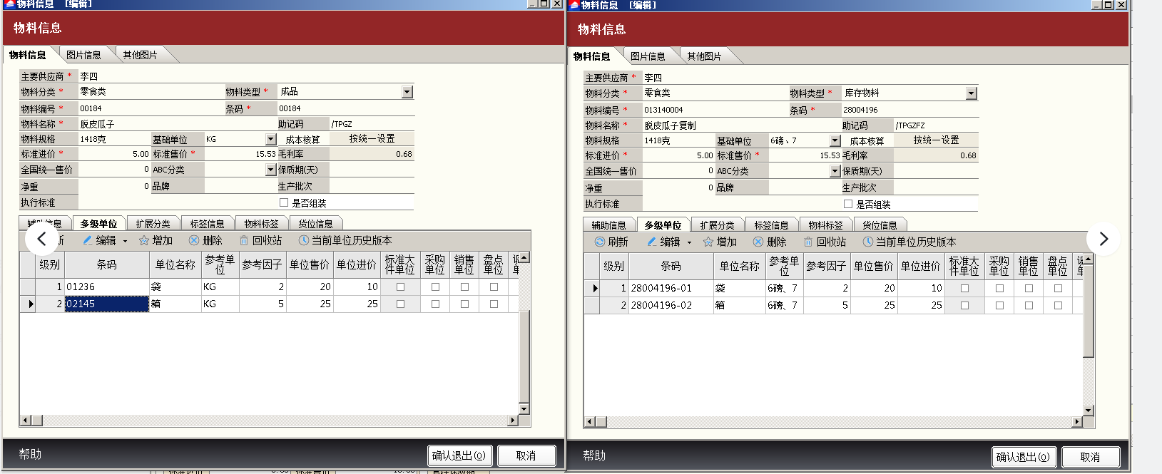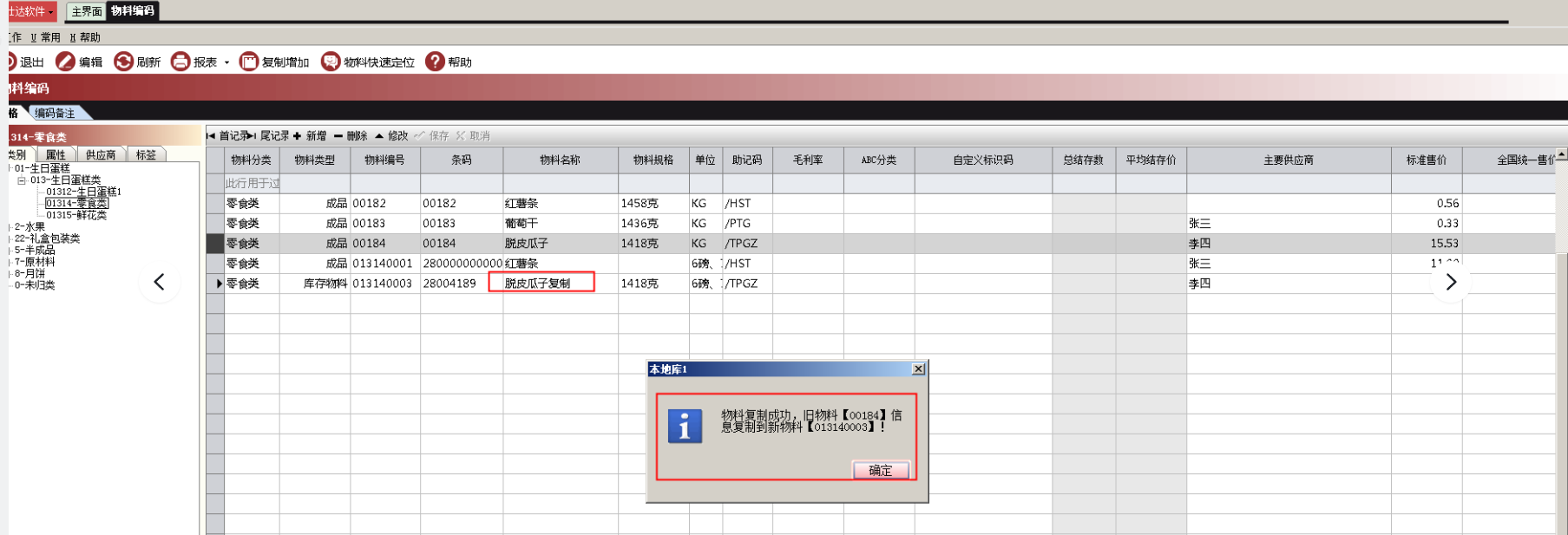 用于添加新物料时,新物料跟旧物料很相似,可直接复制增加。