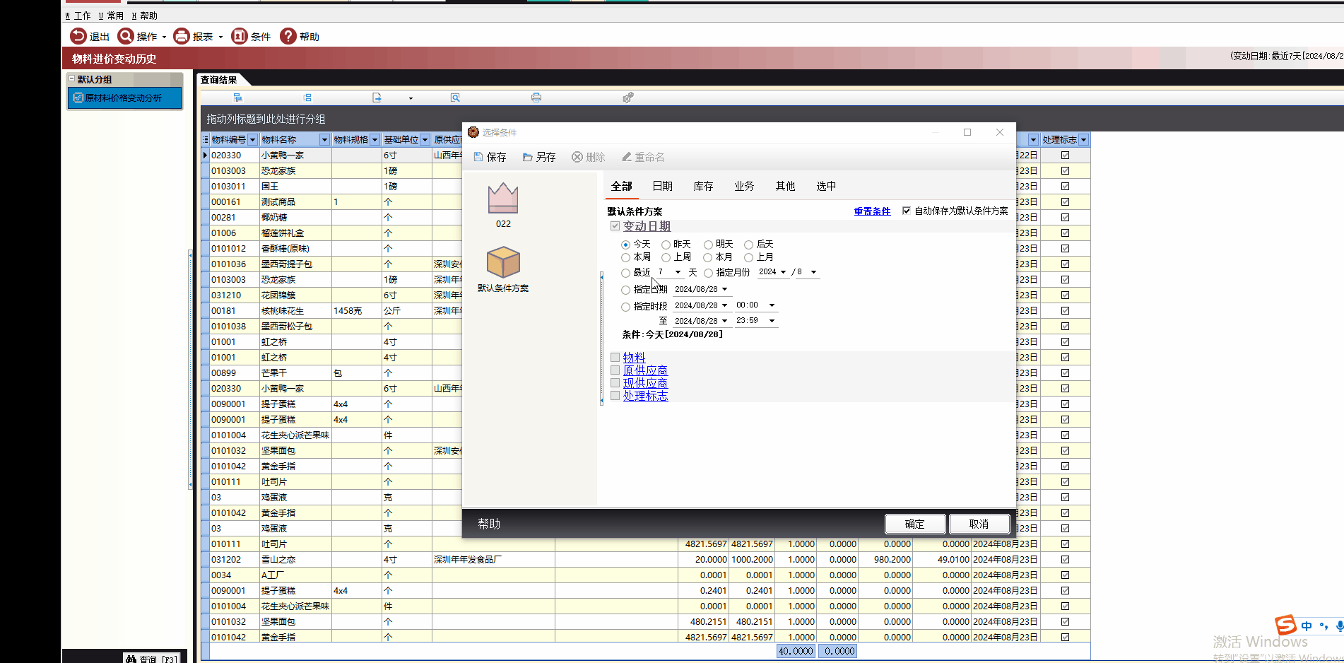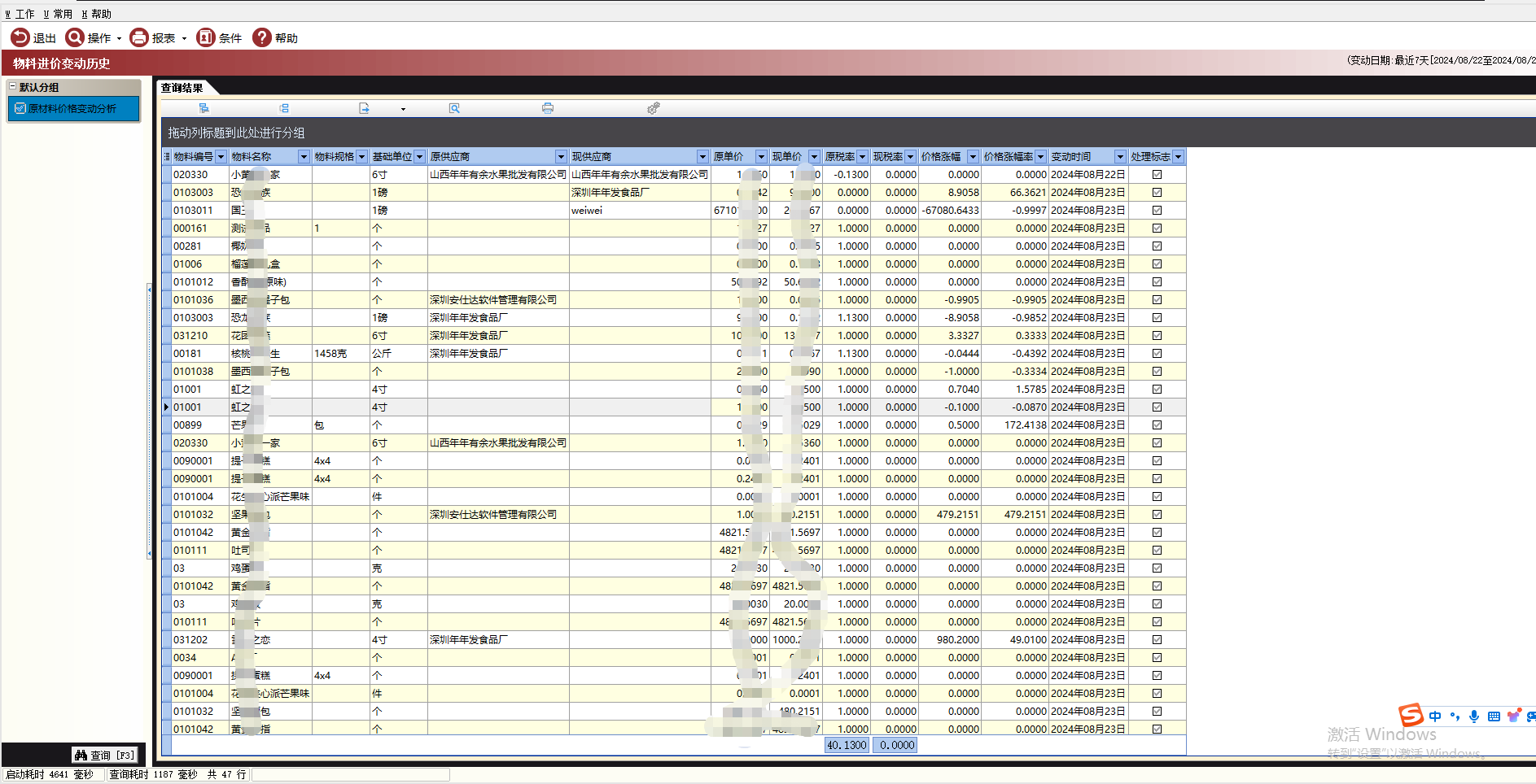 物料进价变动历史报表是用来查询物料采购价格有变化的物料明细。