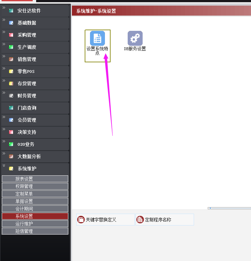 ①在主界面,打开系统维护->系统设置->设置系统特点