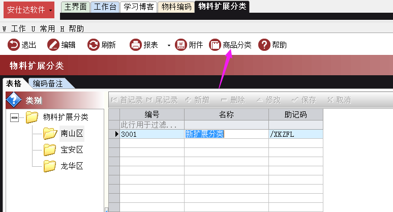 特殊场景无法通过原有分类来查询数据时就需要用到扩展分类了,例如,有部分生产的产品需要单独按区域查询与打印时,就可以把区域设置为扩展分类,这样就可以按区域去打印与查询数据了