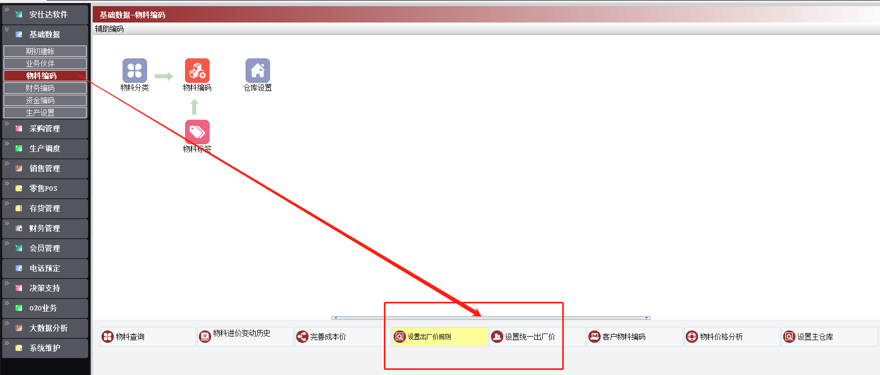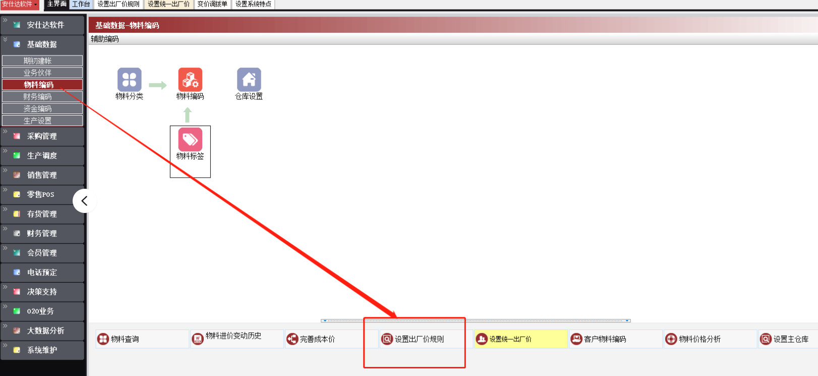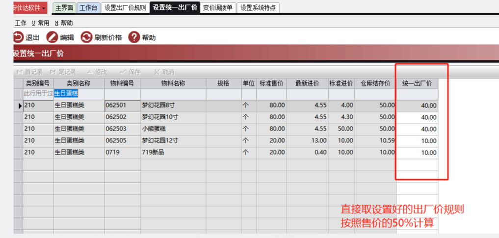 基础数据--物料编码--设置统一出厂价