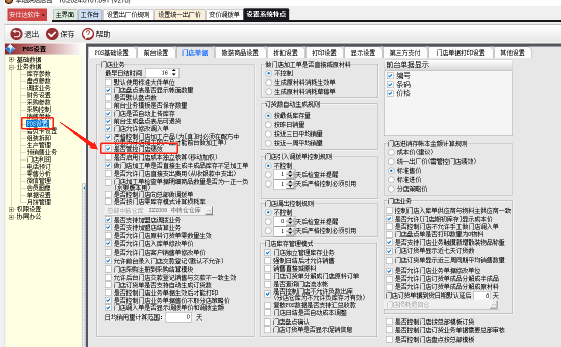 是否管控门店绩效是一种管理模式,需要对门店绩效进行评估的情况下使用,勾选此特点之后,调拨给各个门店的商品都是以出厂价来计算的,需要设置每个物料的出厂价。