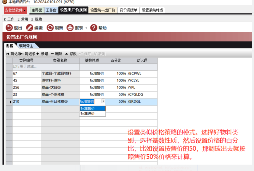 2、设置出厂价规则