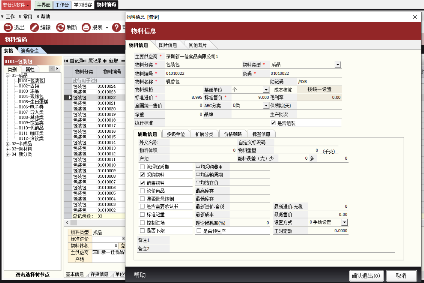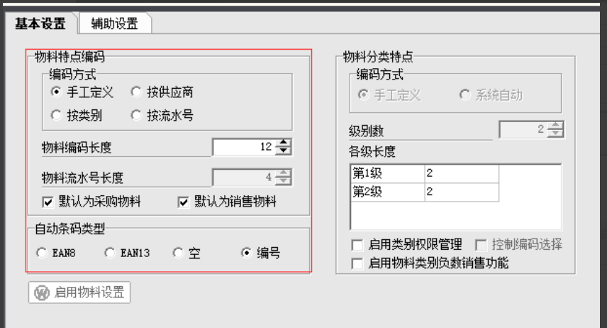 新增物料时,条码需要设置,特点可根据实际情况定义。如(手工定义:000001。按流水号:系统自动按流水号生成。一般这两种特点用的多)