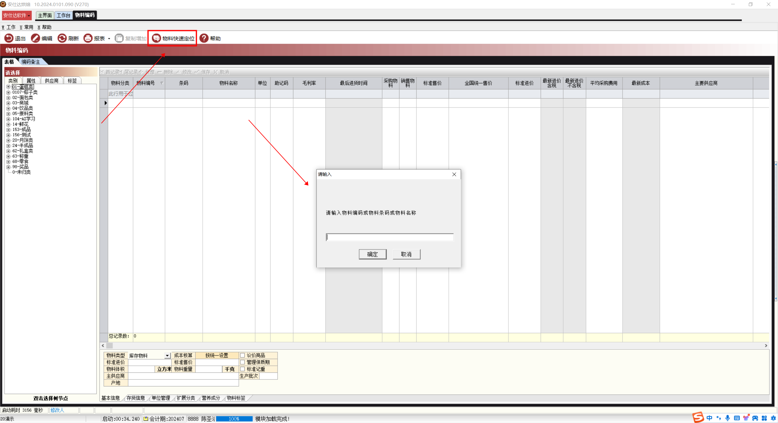 类似会员卡管理的会员卡快速定位,可以通过该功能,快速定位到某个物料
