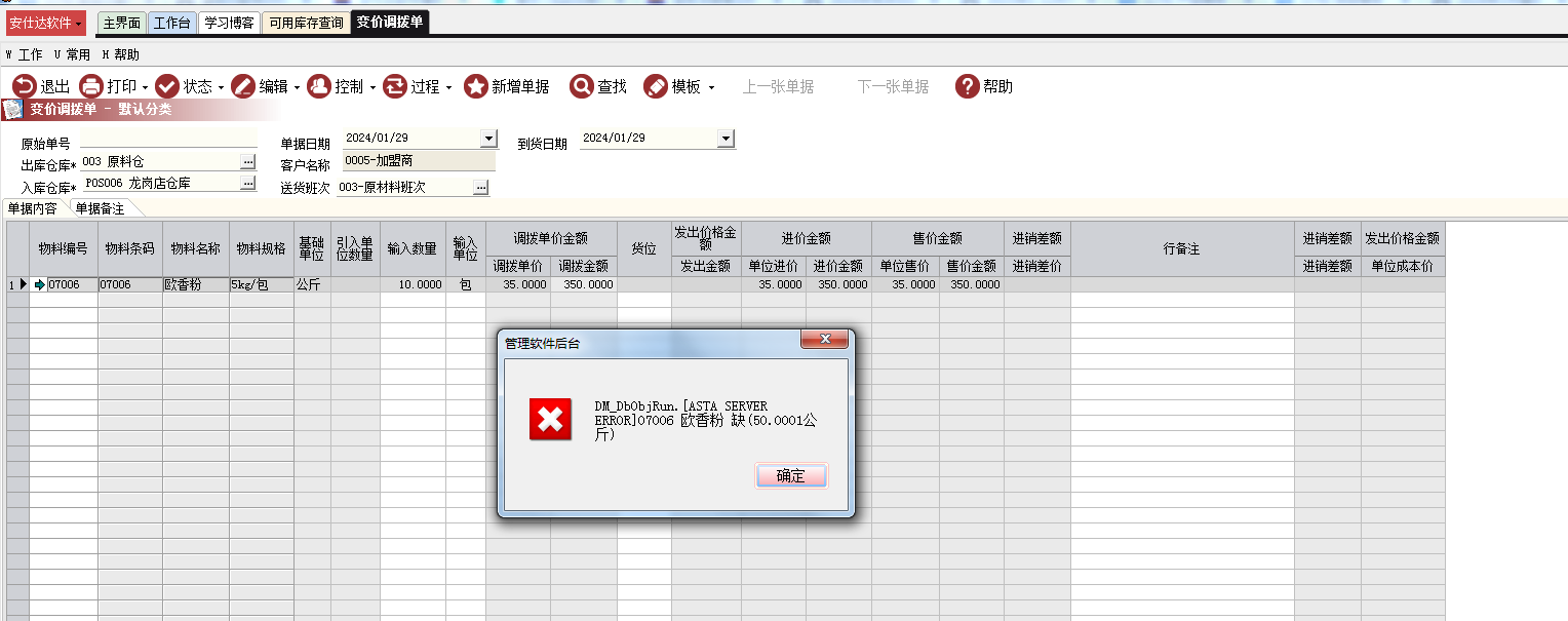 (1)控制仓库不允许负库存出库后,相应单据生效时会提示库存不足