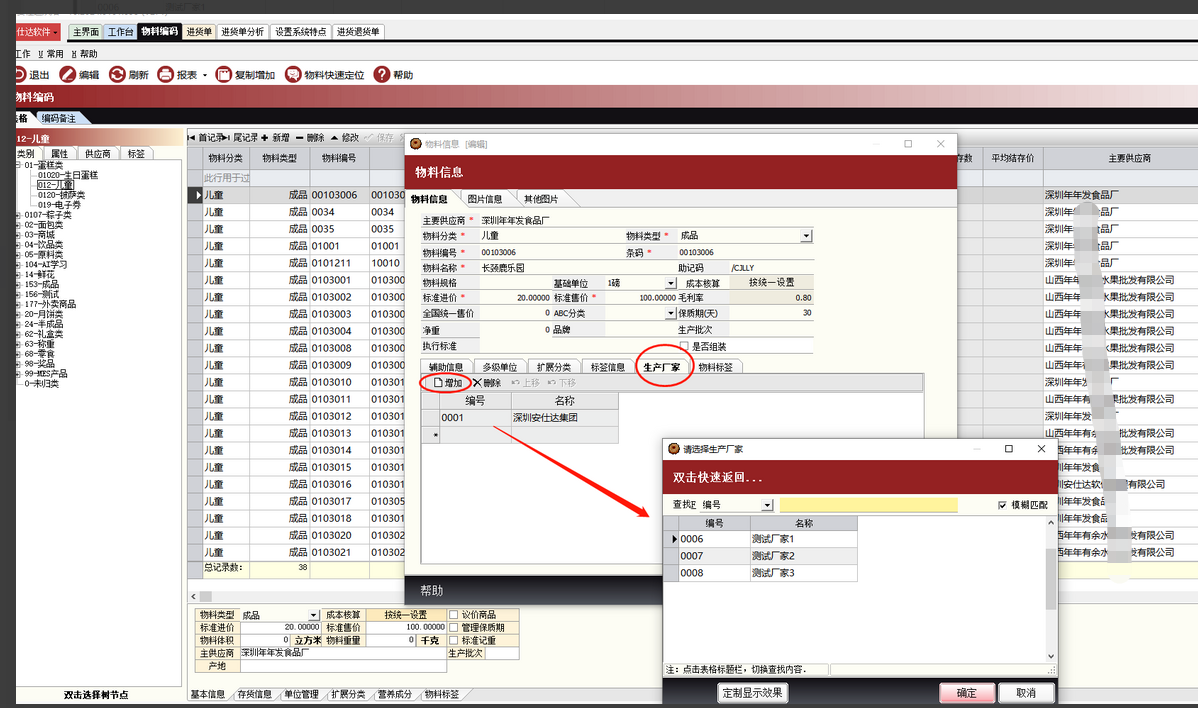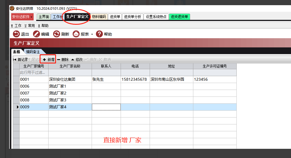 生产厂家定义好后,记得重启软件,后续物料编码、进货单等才可以正常使用。