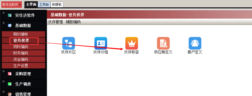 路径:基础数据-物料编码-业务伙伴-伙伴标签