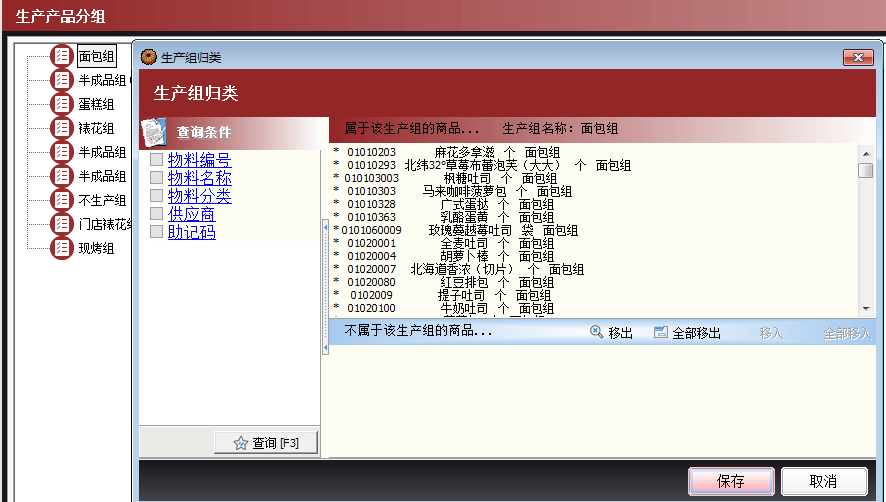 打开生产组页面,对于生产车间需要生产的产品分类分组,比如:现烤组、蛋糕组。便于生产部打印生产计划单时能够合理安排排产,不同组别的产品安排给不同的组别,有利于生产效率提高。