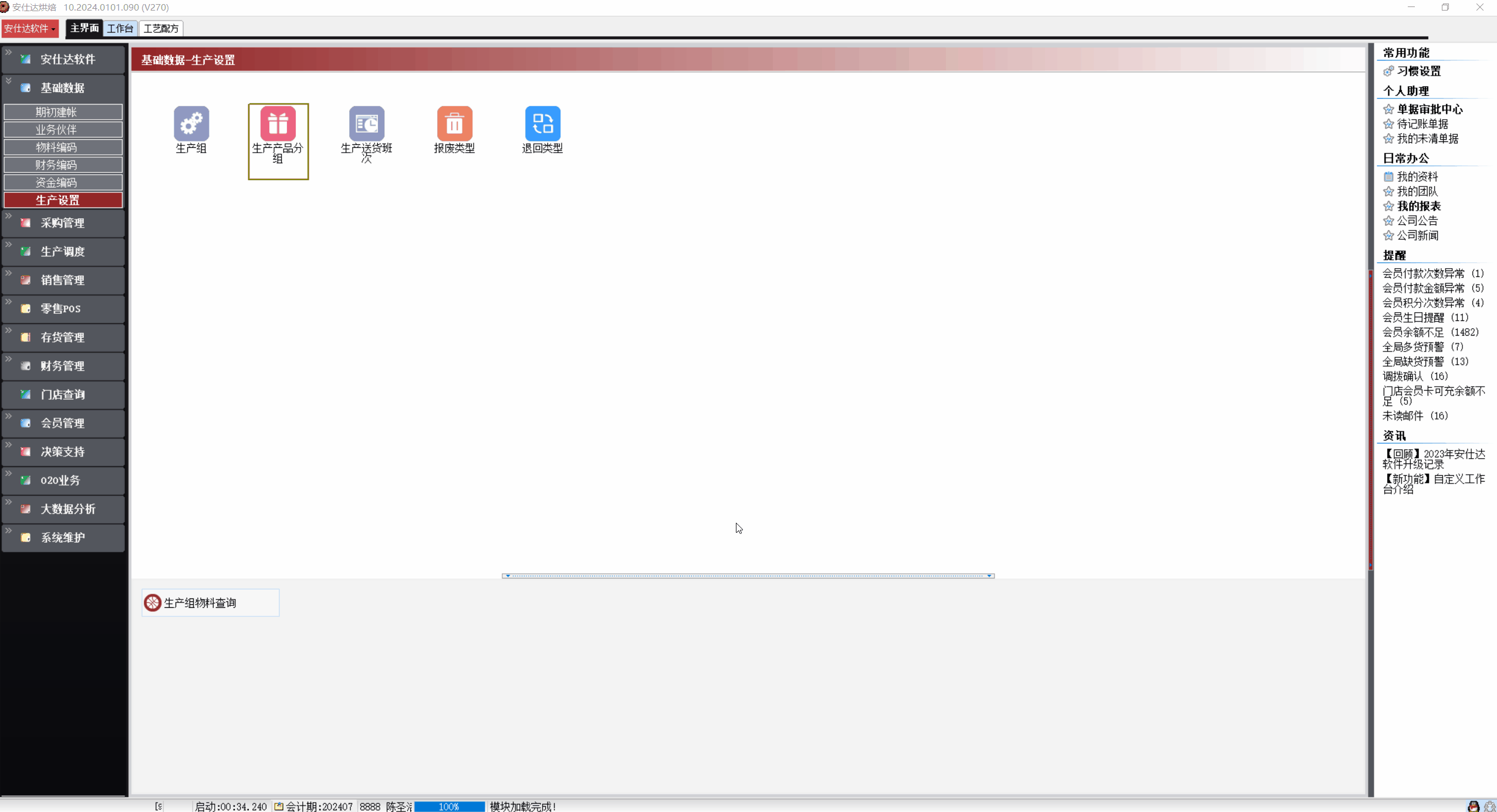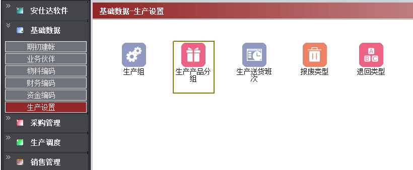 对于定义好的生产组,可以将各生产组组别下包含哪些产品移入进去,这样方便管理维护生产组产品,特别是物料编码增加新品的时候,需要增加到对应组别中。