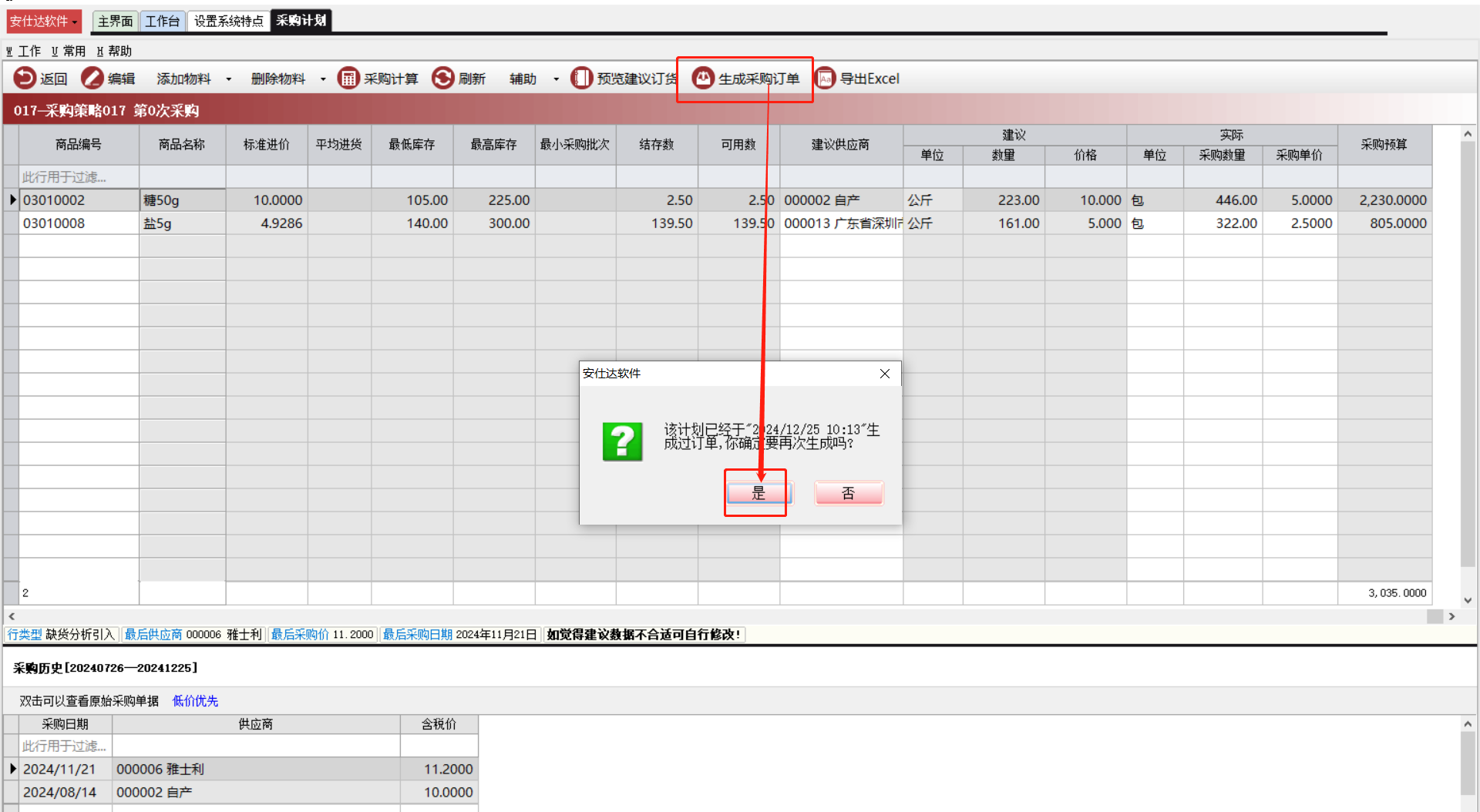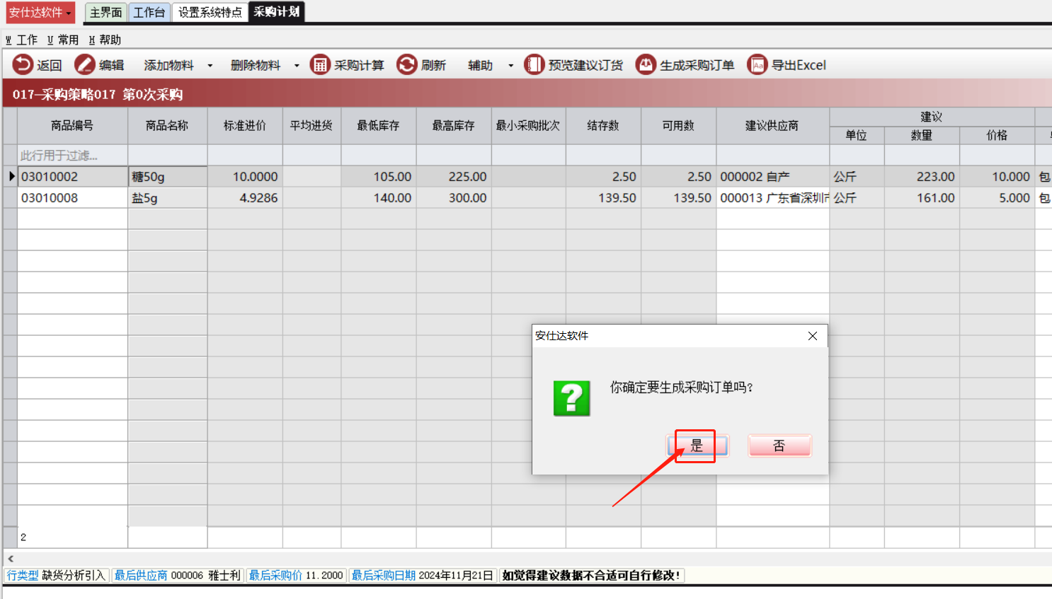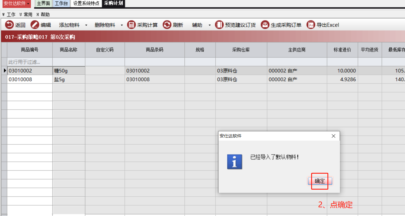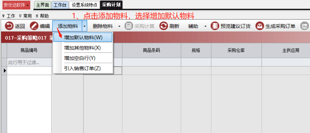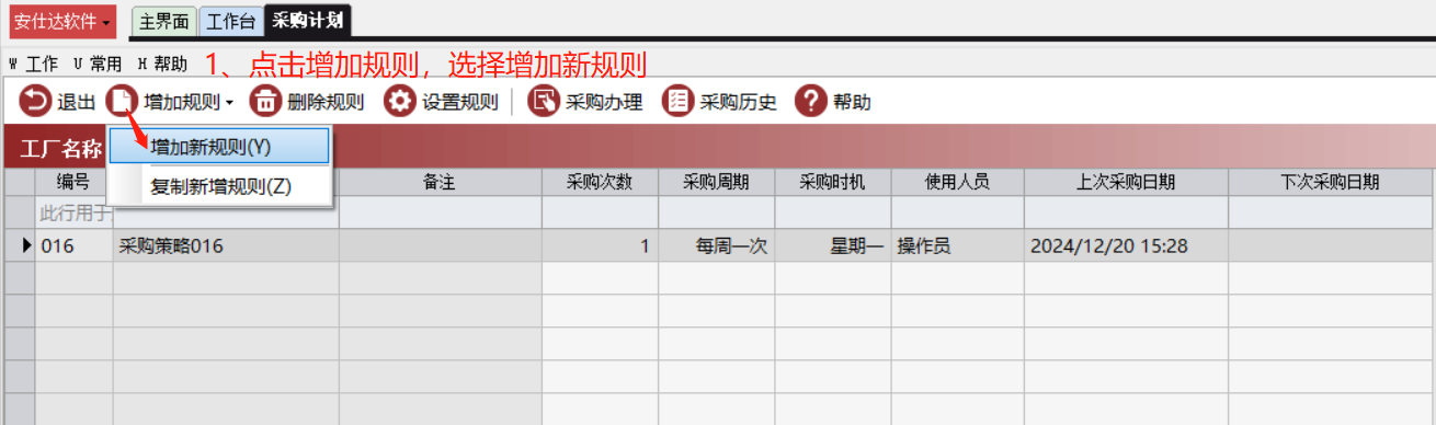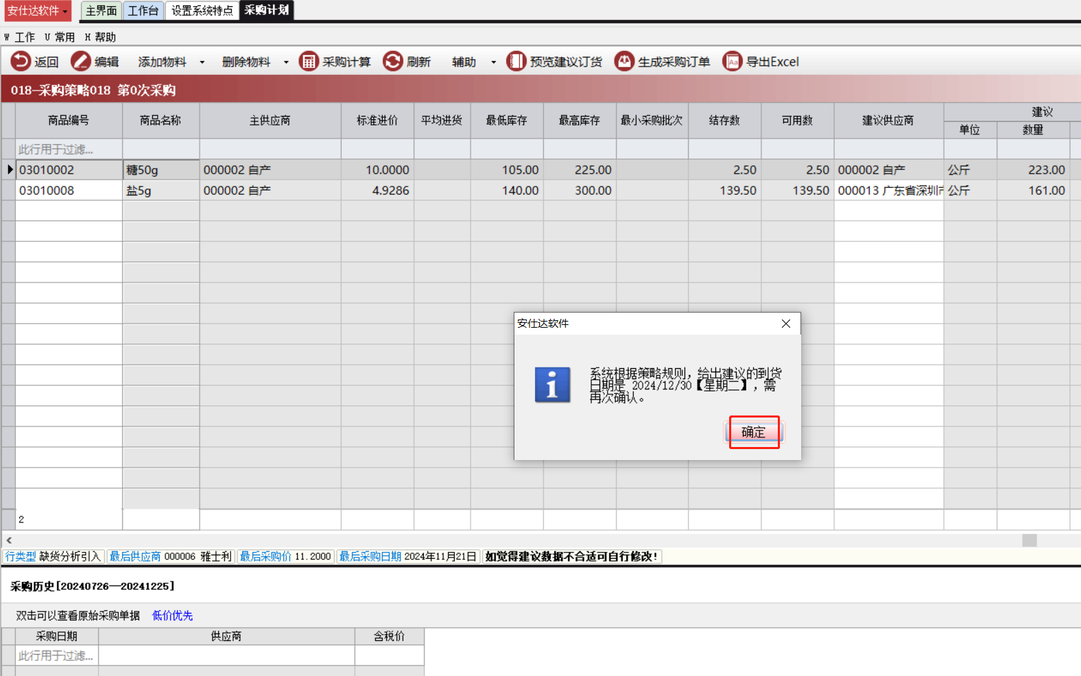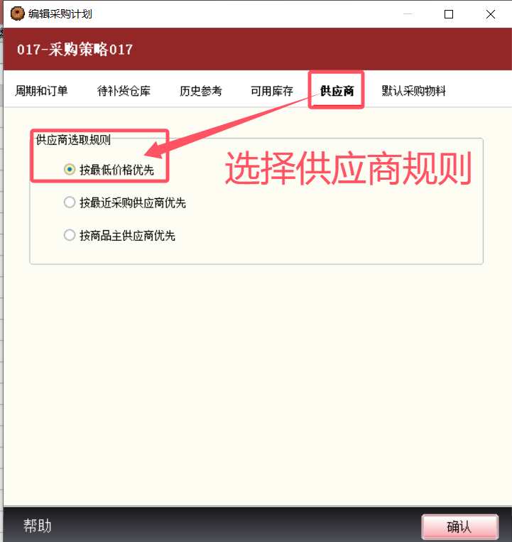 6、选择供应商规则(可选,这里软件默认按照价格采购价格最低的供应商)