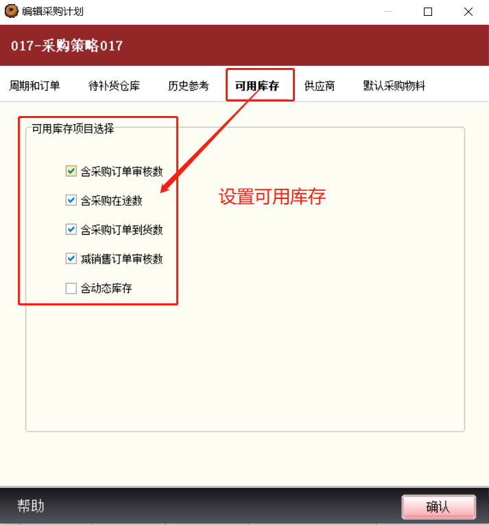 5、设置可用库存(可选,这里软件默认勾选四项)
