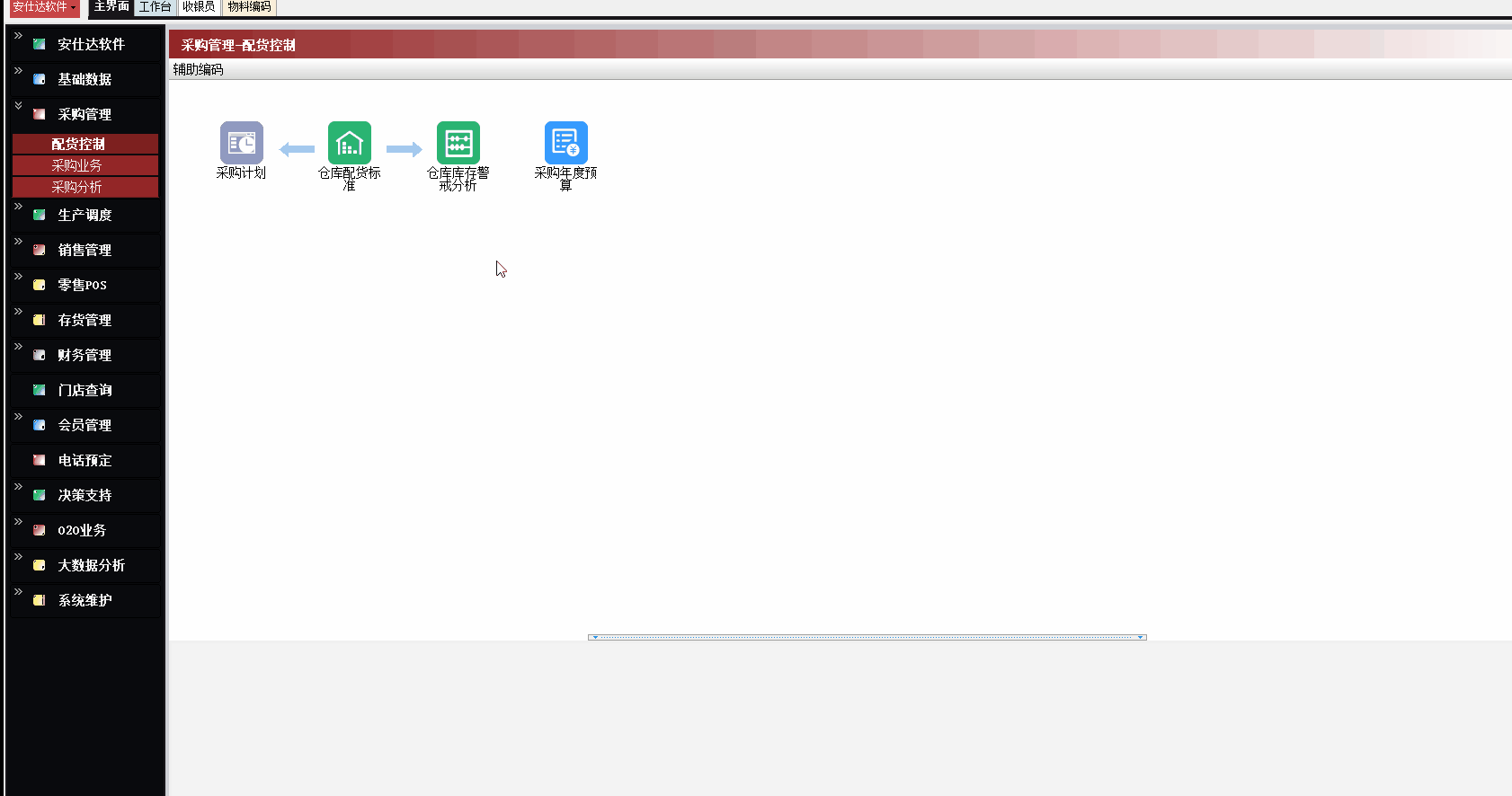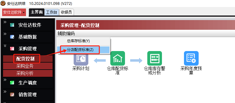 路径:【进入系统】→【采购管理】→【配货控制】→【辅助编码】-【分店配货标准】