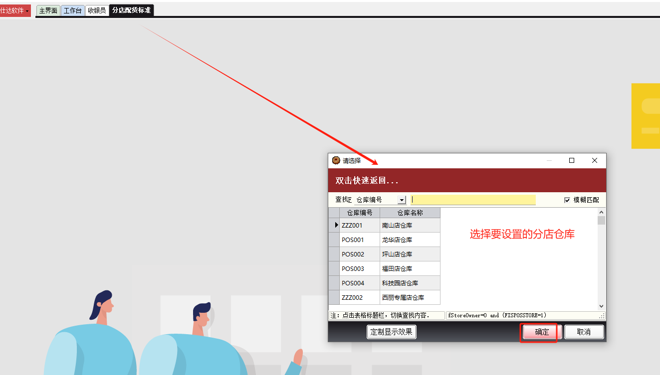 操作方法:1)、选择你需要设置安全库存的分店仓库