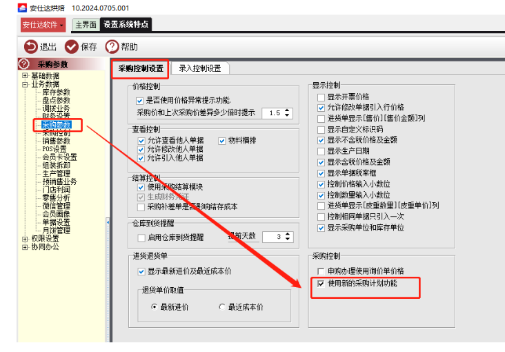 需开启特点,特点路径:业务数据--采购参数--采购控制设置--使用新的采购计划功能