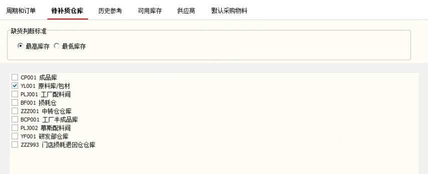这里的设置项目和规则跟以前的采购计划相同,建议定义为系统特点里面的可用库存设置。