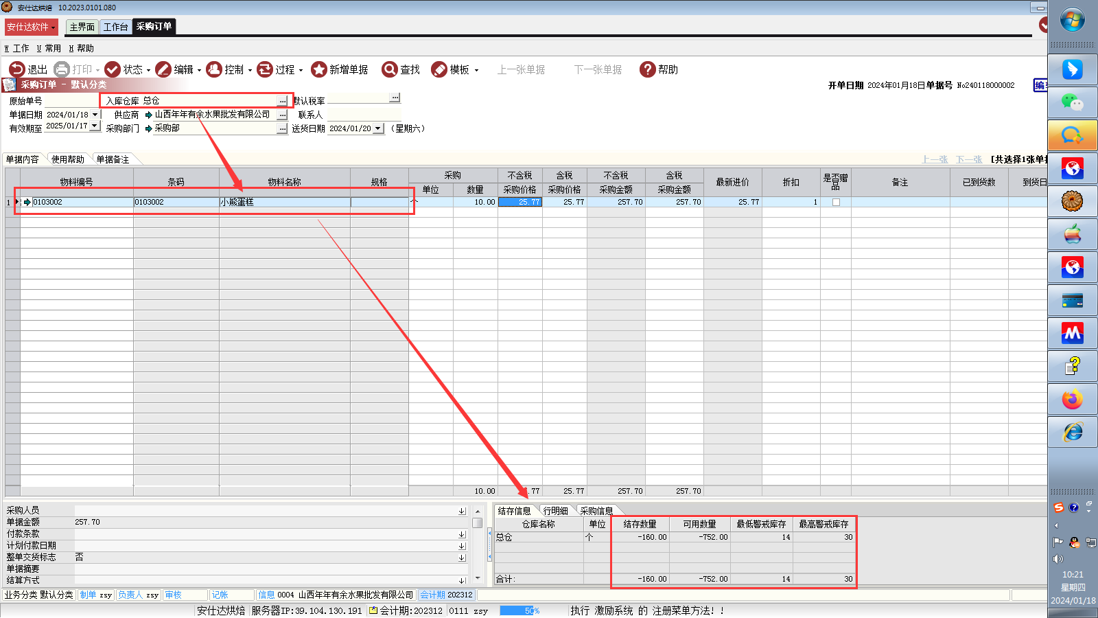 适用场景:添加每个仓库的安全库存标准,辅助填写采购订单(采购订单有专门的视频文档指导,这里就不多介绍了),并可以在仓库库存警戒分析模块(仓库库存警戒分析模块有专门的视频文档指导,这里就不多介绍了)根据仓库配货标准中定义的最高库存、最低库存,结合仓库中当前结存的数量,得到库存的超低库存或超高库存。