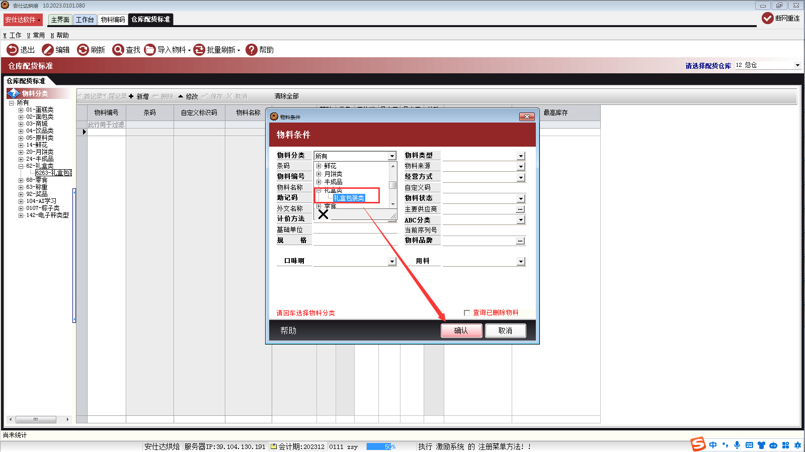 2.点击编辑选择礼盒类下的礼盒包装类在导入物料选择按照物料范围导入