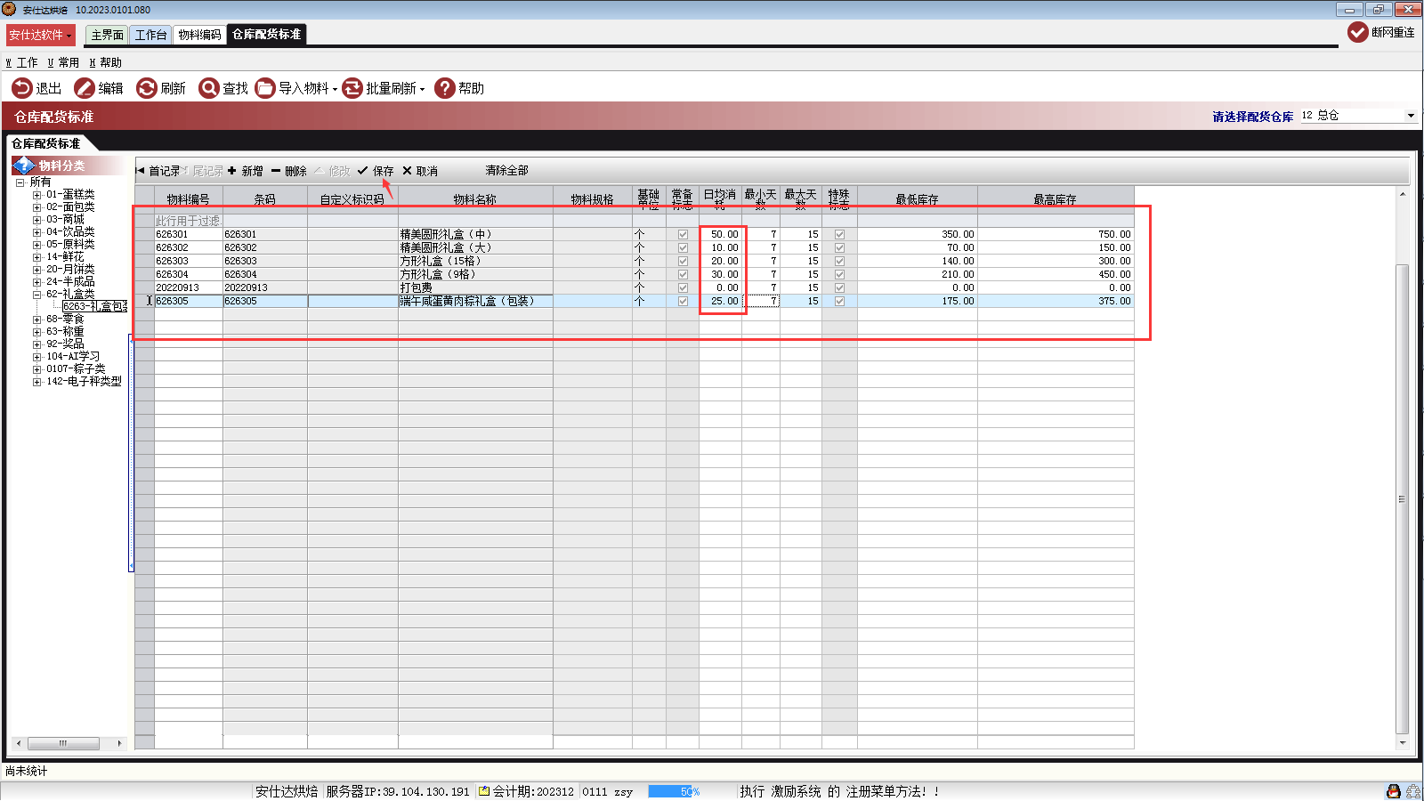 4.输入每个礼盒物料的日均消耗最后点击保存就可以了