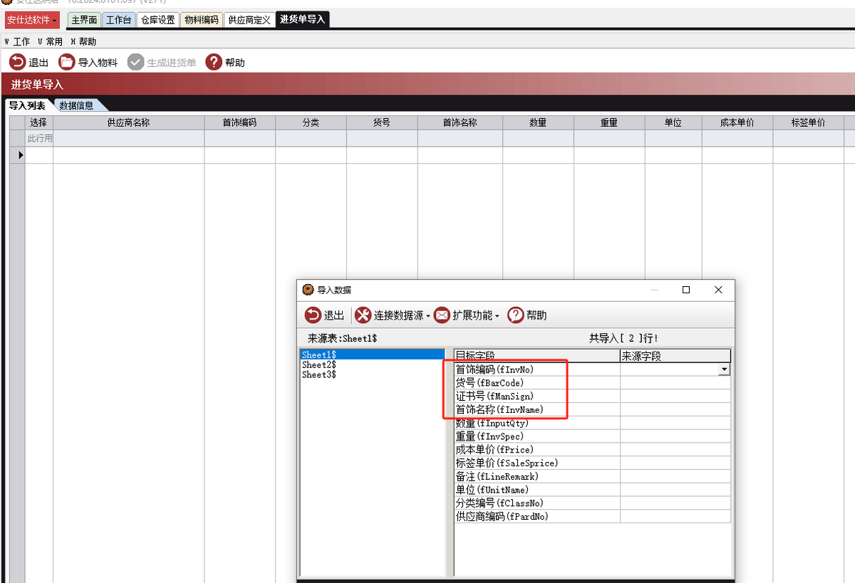 用于导入excel物料来生成进货单。卖珠宝首饰客户专用。
