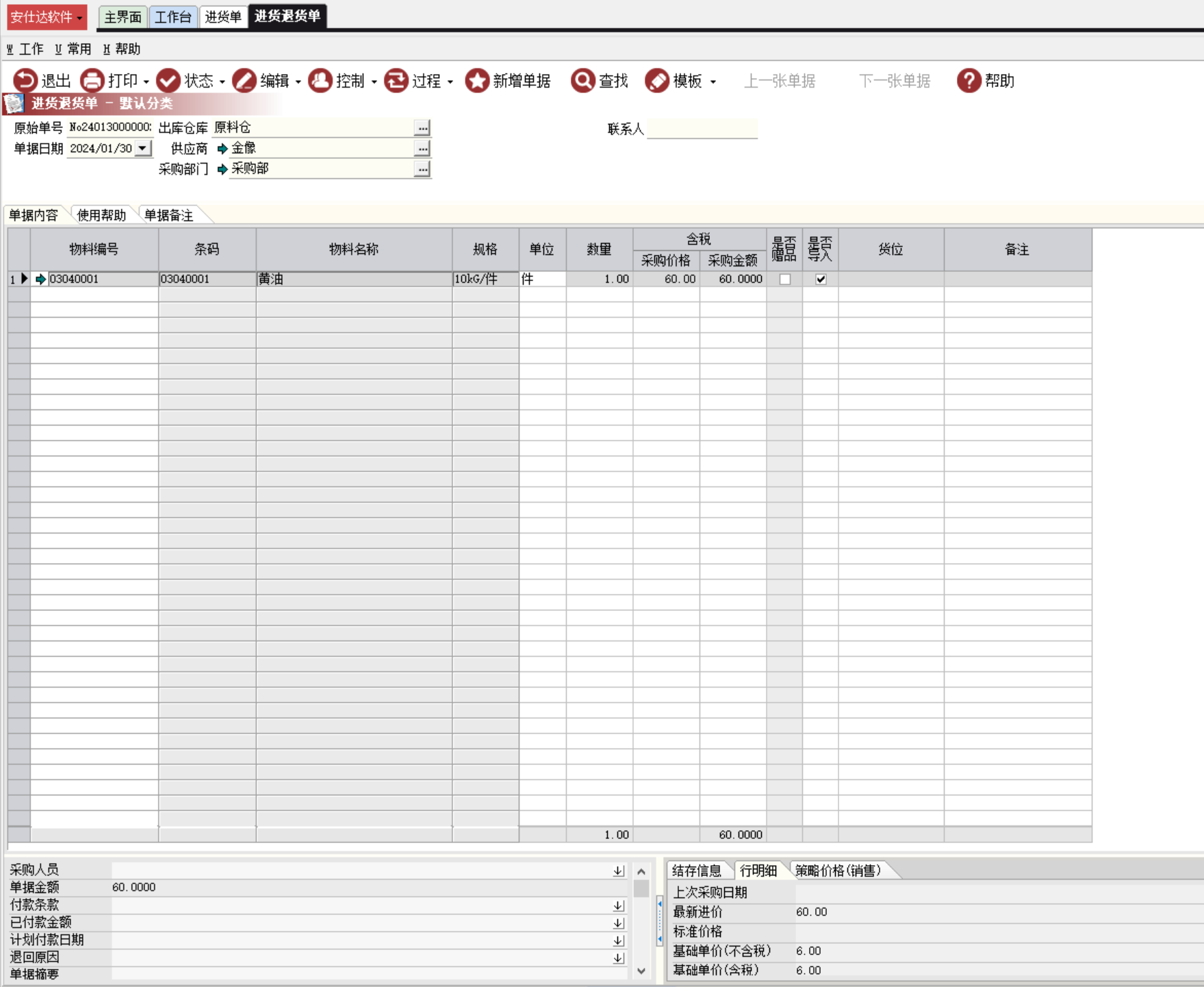 退回原因:单据尾可以选择退货原因,事先在辅助编码里定义好退货原因。