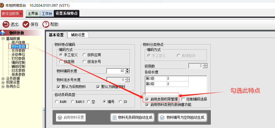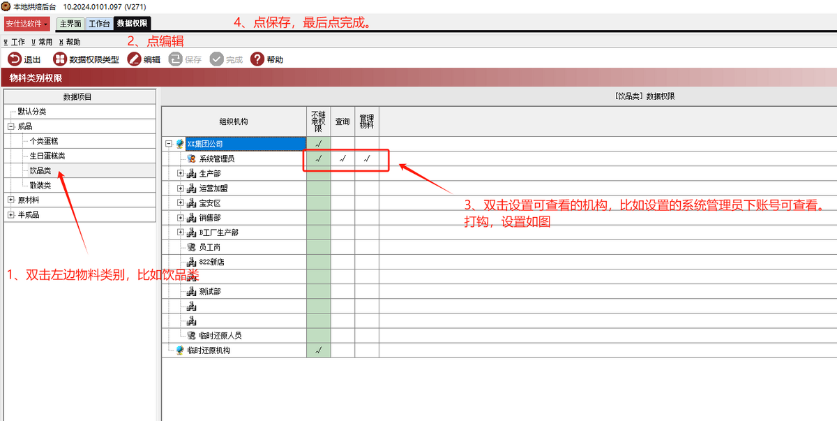 3.2 设置物料类别权限