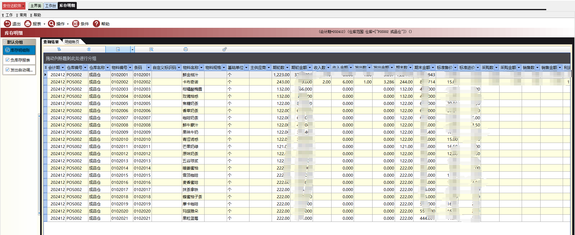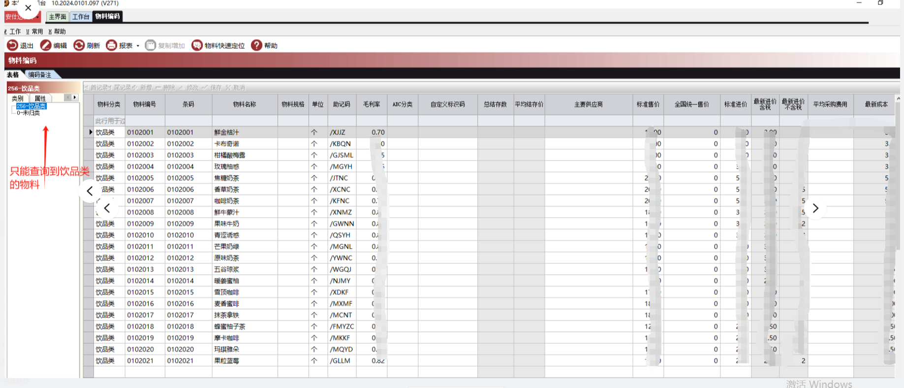 业务单据以及报表查询也只能查询到饮品类的物料